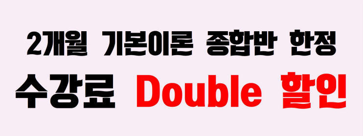 할인에 할인을 더해서! 수강료 50% + 추가 22% 할인 (2개월 기본이론반 3과목이상 종합반 한정)