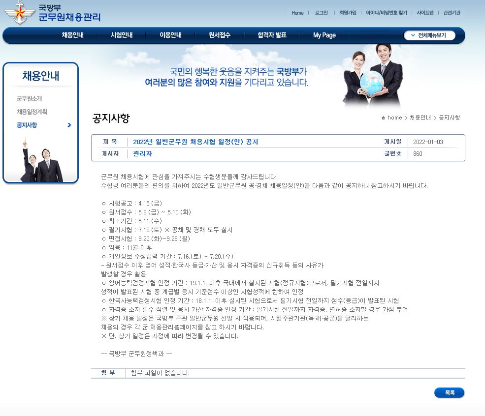 채용의 경우 각 군 채용관리홈페이지를 참고 하시기 바랍니다.