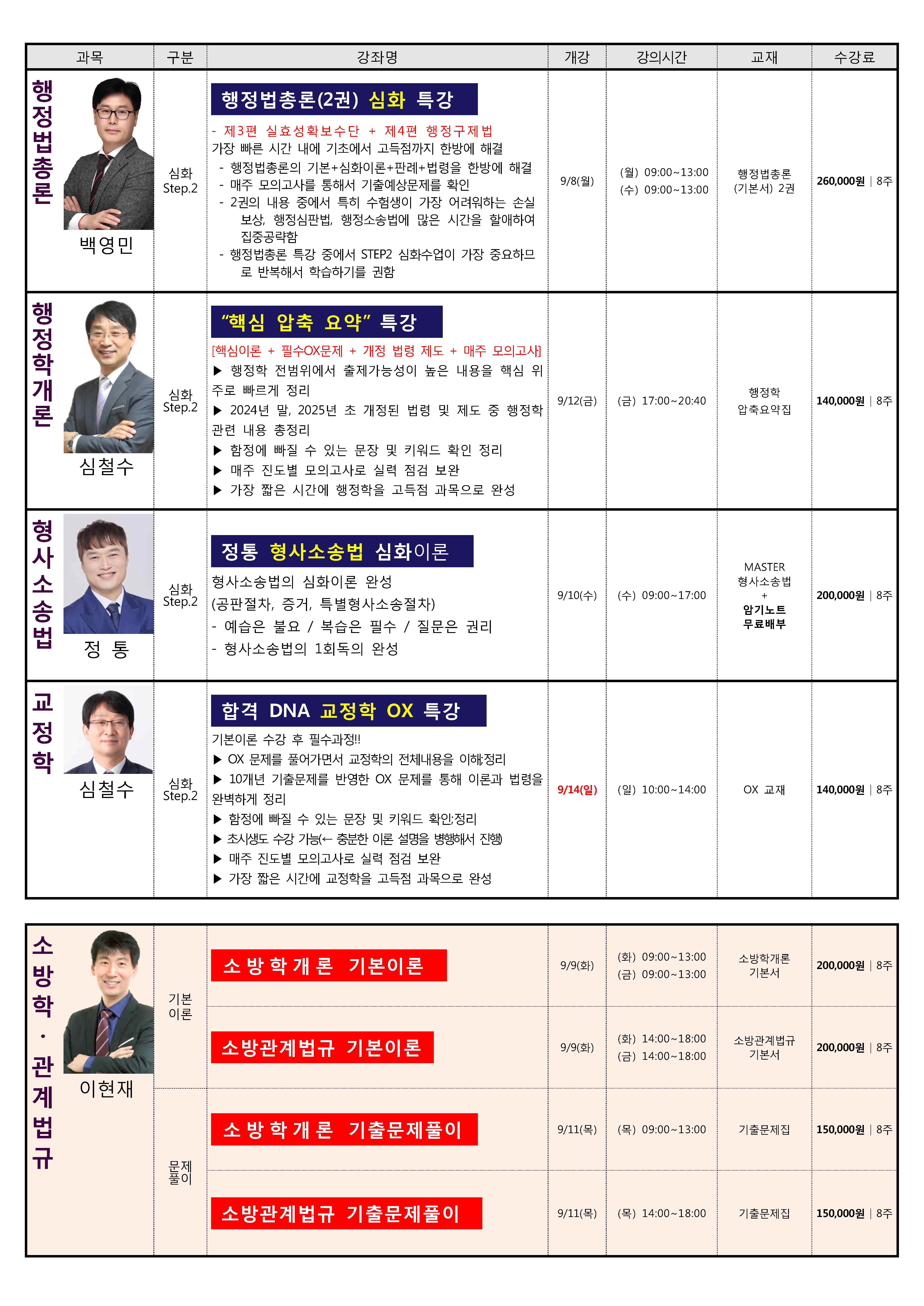 [9-10월] 공무원/소방공무원/군무원 과목별 심화단과