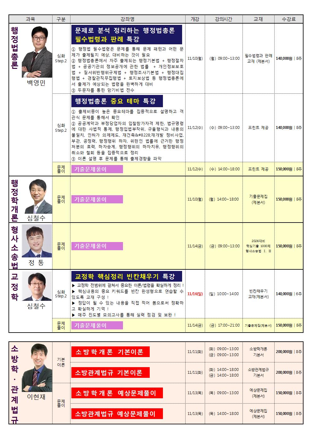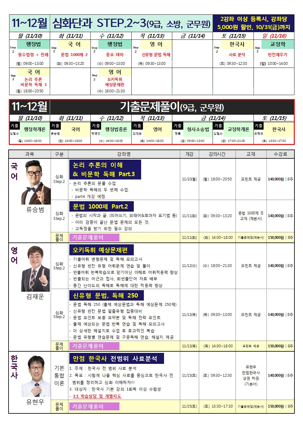 [11-12월] 공무원/소방공무원/군무원 과목별 심화단과