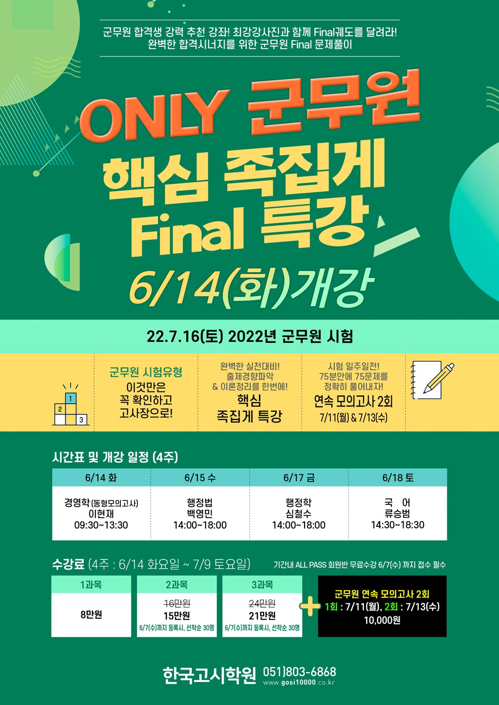 ONLY 군무원 핵심 족집게특강 6/14(화) 개강!