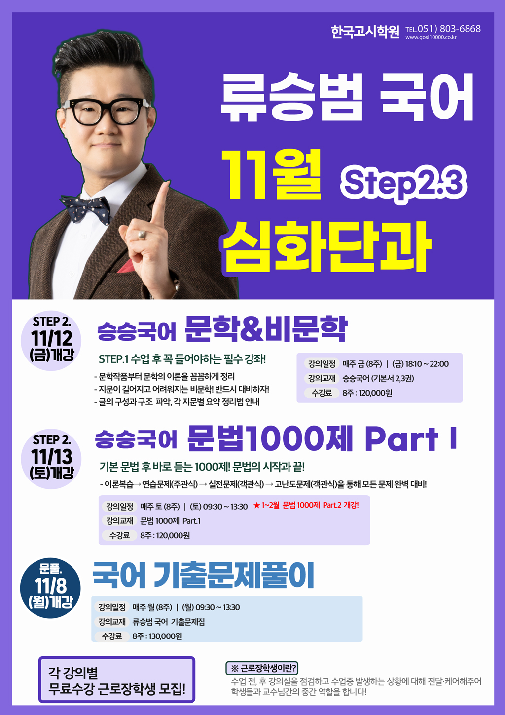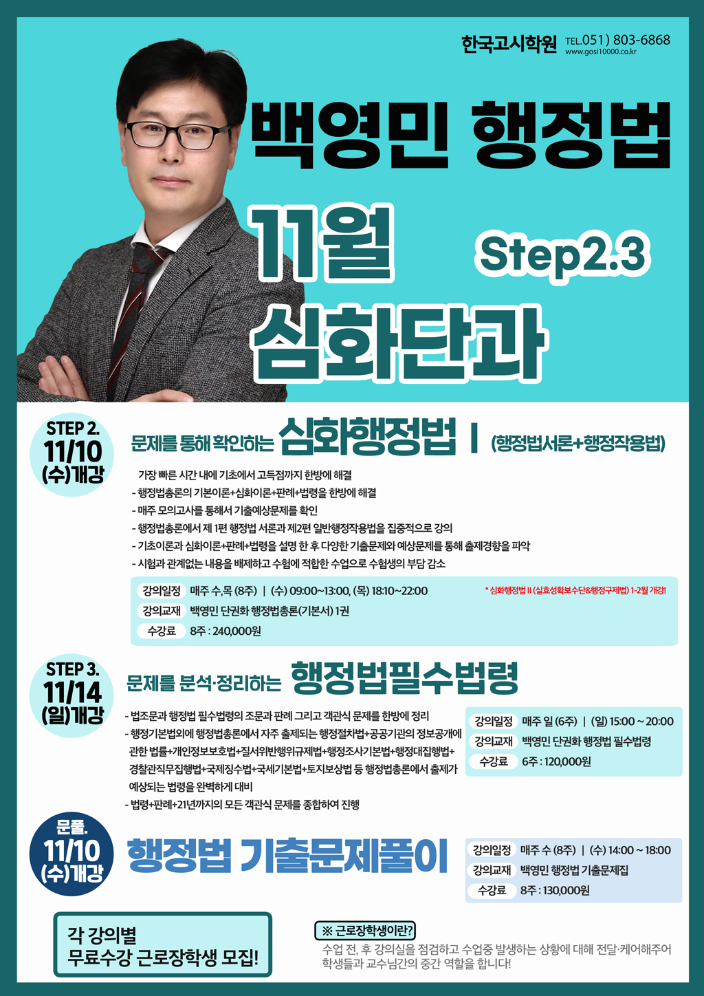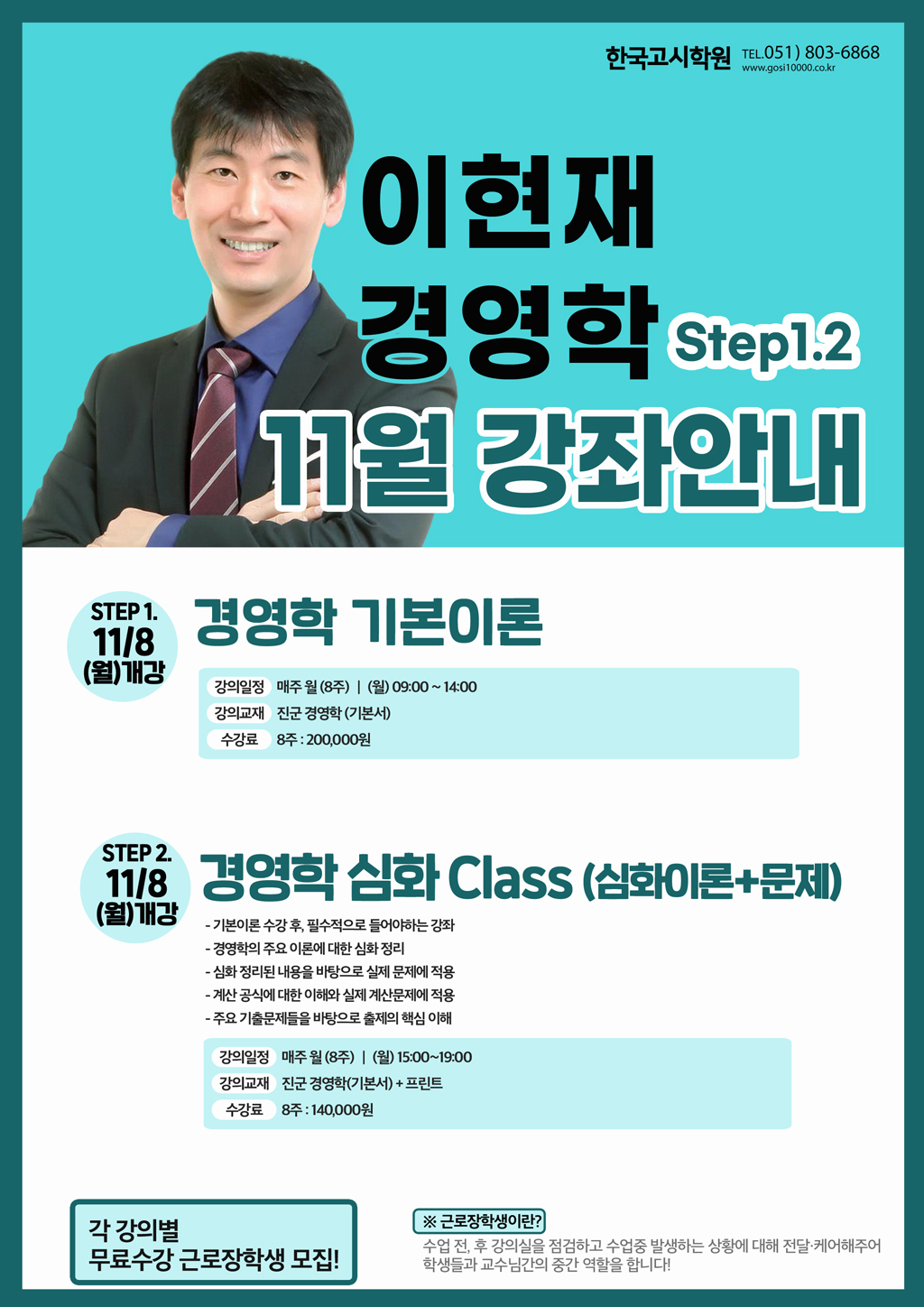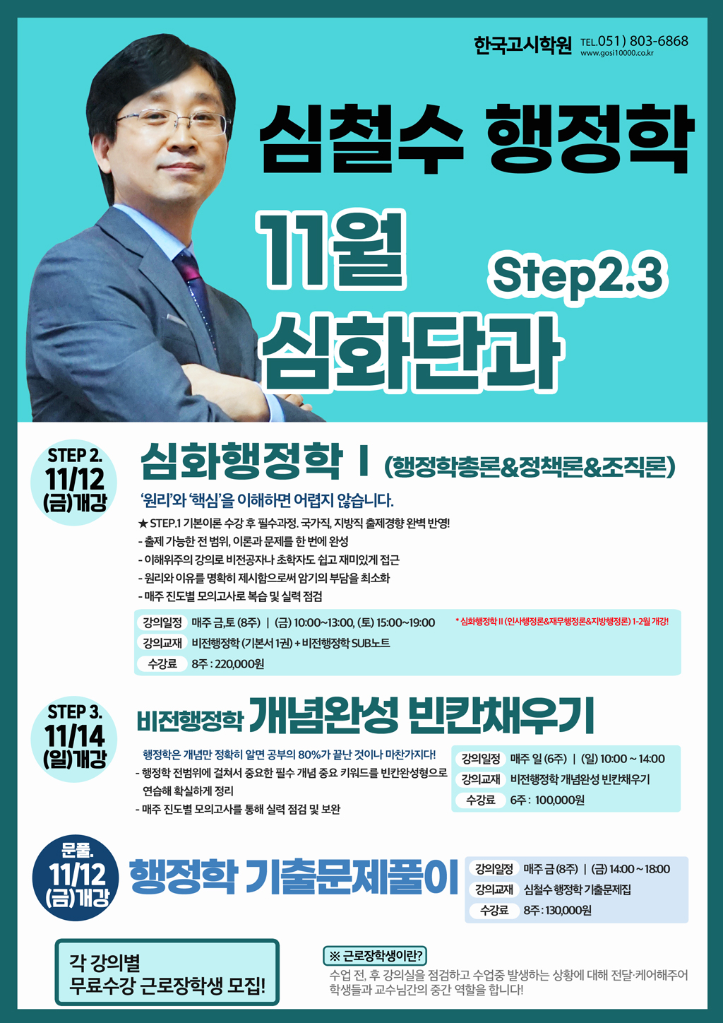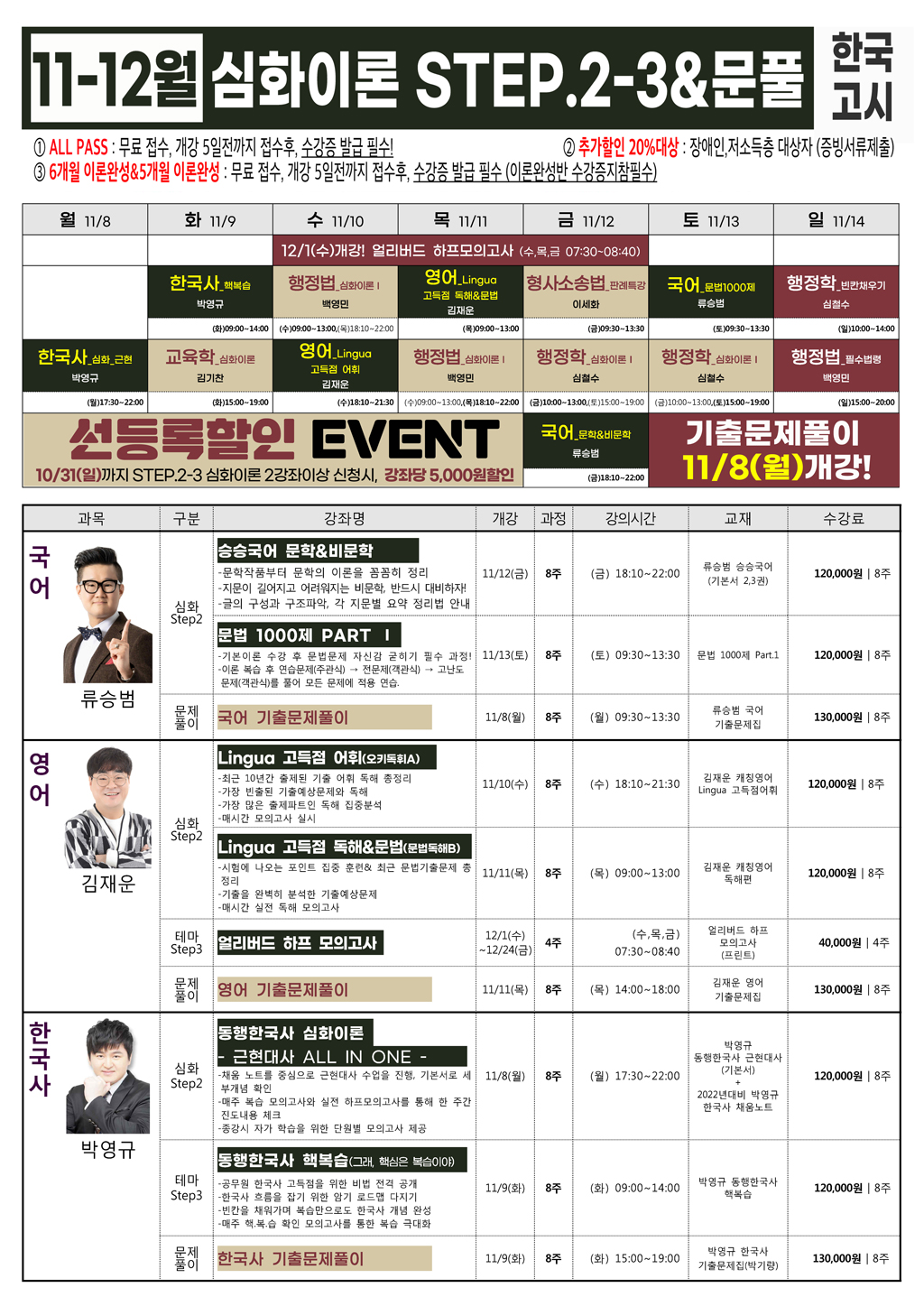 STEP.1 기본이론 수강 후, 필수 과정! 고득점을 준비하라!STEP.2-3 심화이론 11월8일 월요일 개강!선등록 EVENT! 10/31(일)까지 2강좌이상 등록시 강좌별 5000원할인!