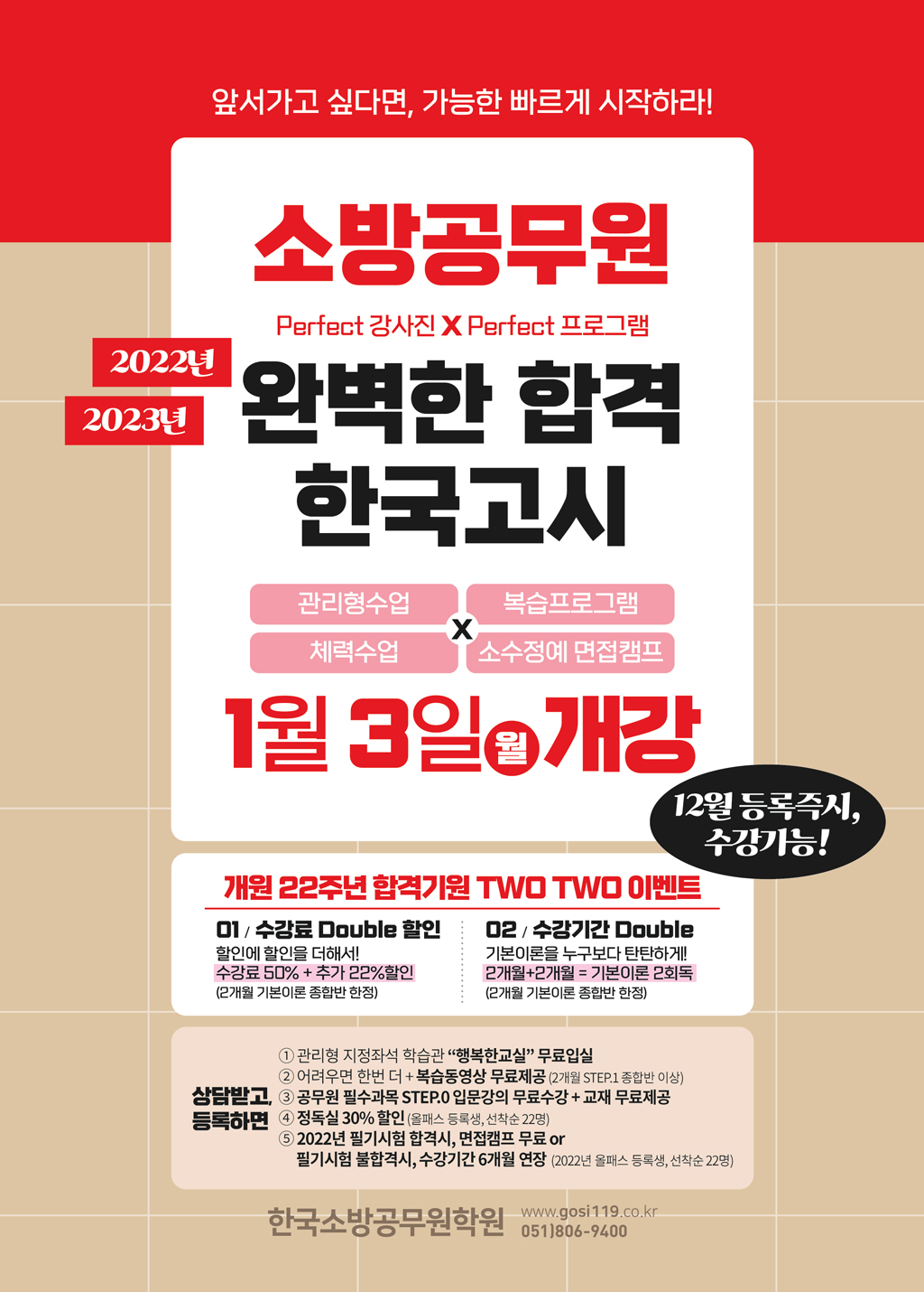 앞서가고 싶다면, 가능한 빠르게 시작하라! 소방공무원 합격을 위해 UPGRADE된 한소공!