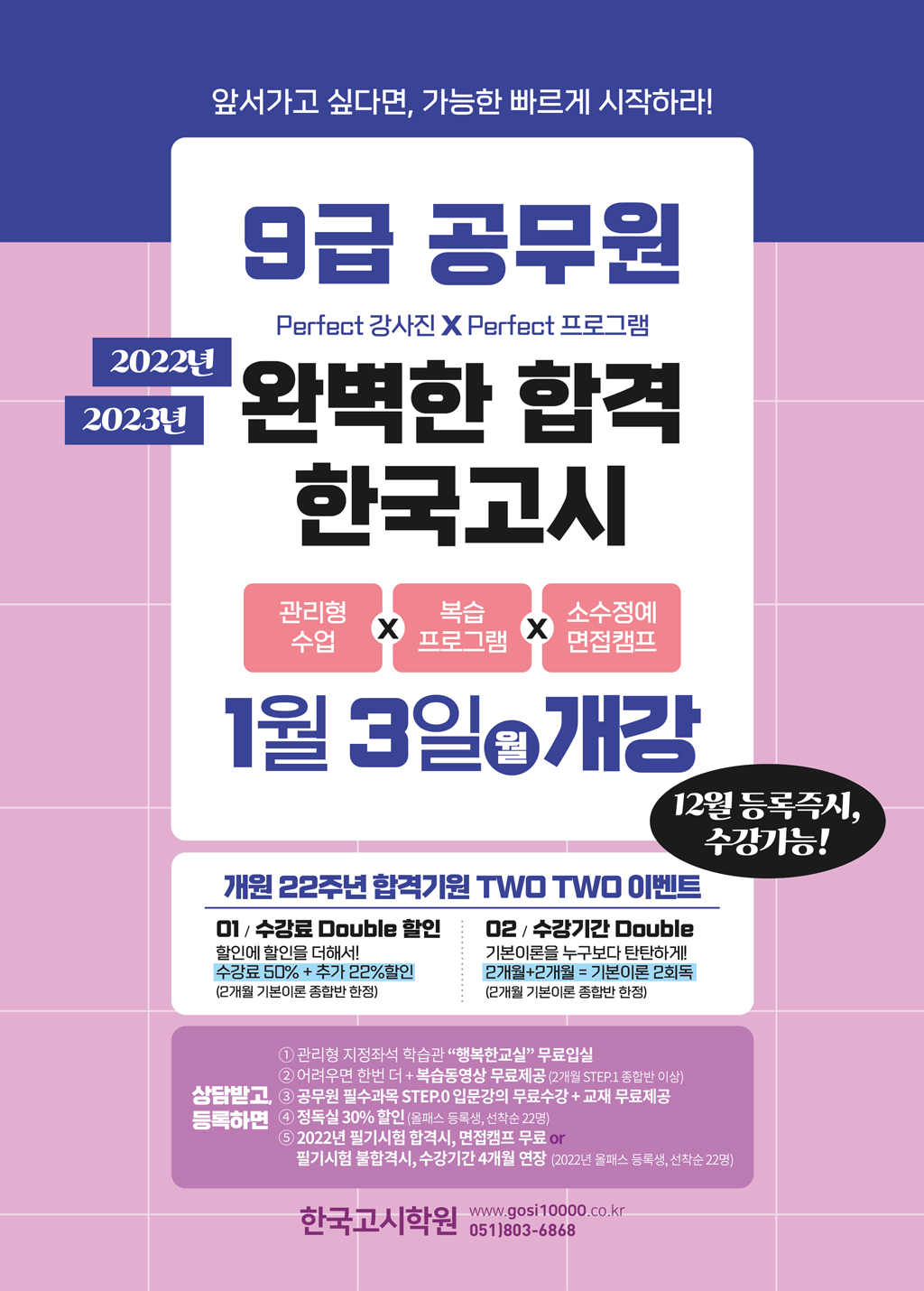 앞서가고 싶다면, 가능한 빠르게 시작하라! 공무원 합격을 위해 UPGRADE된 한국고시!