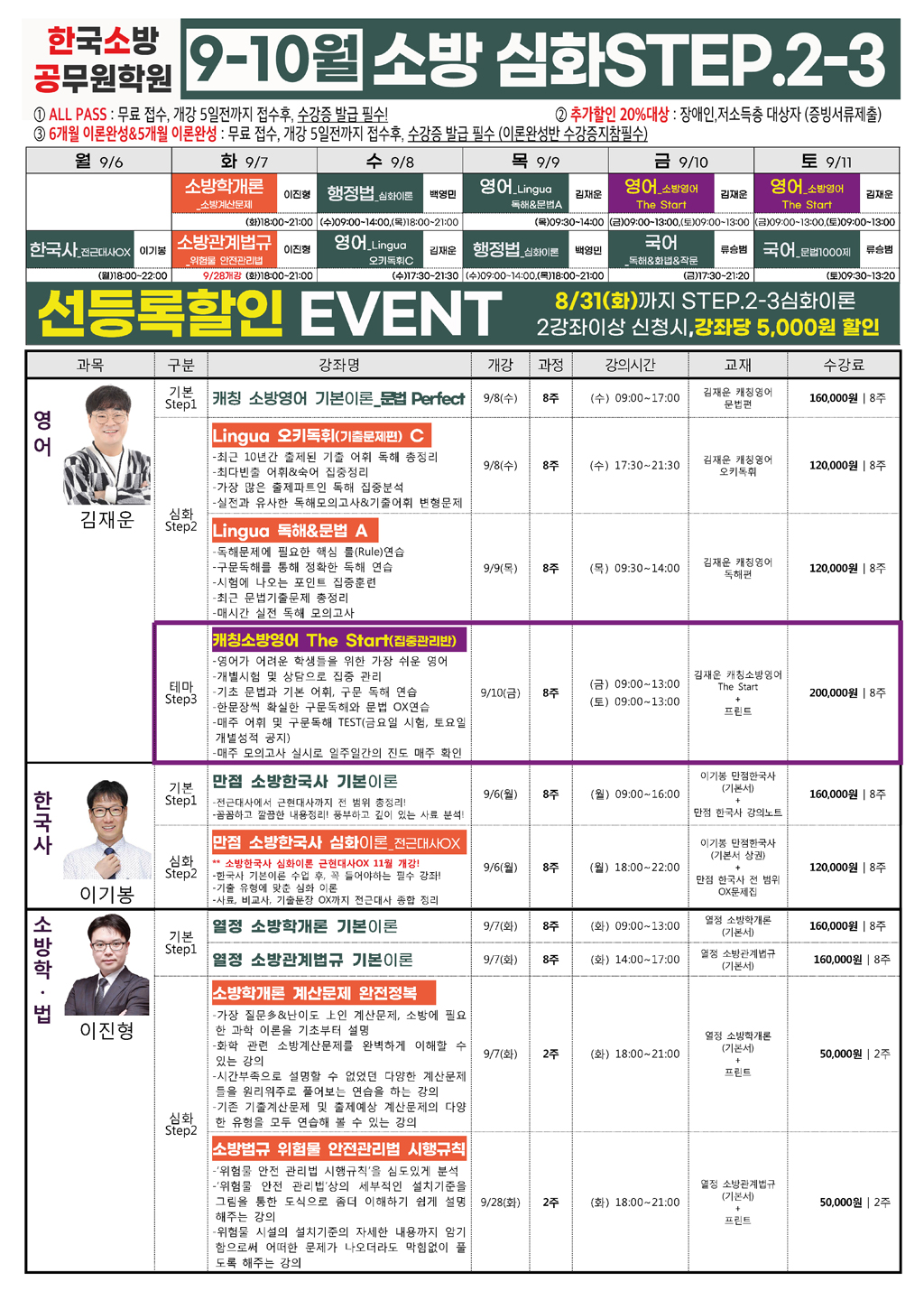 ◎소방영어 집중관리반 김재운 캐칭소방영어 THE START 9/10(금)개강!◎