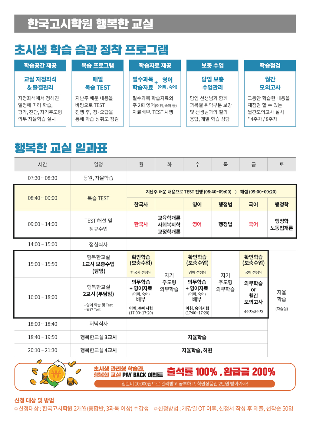 ◇ 관리형 지정좌석 학습관 "행복한교실" PayBack이벤트!