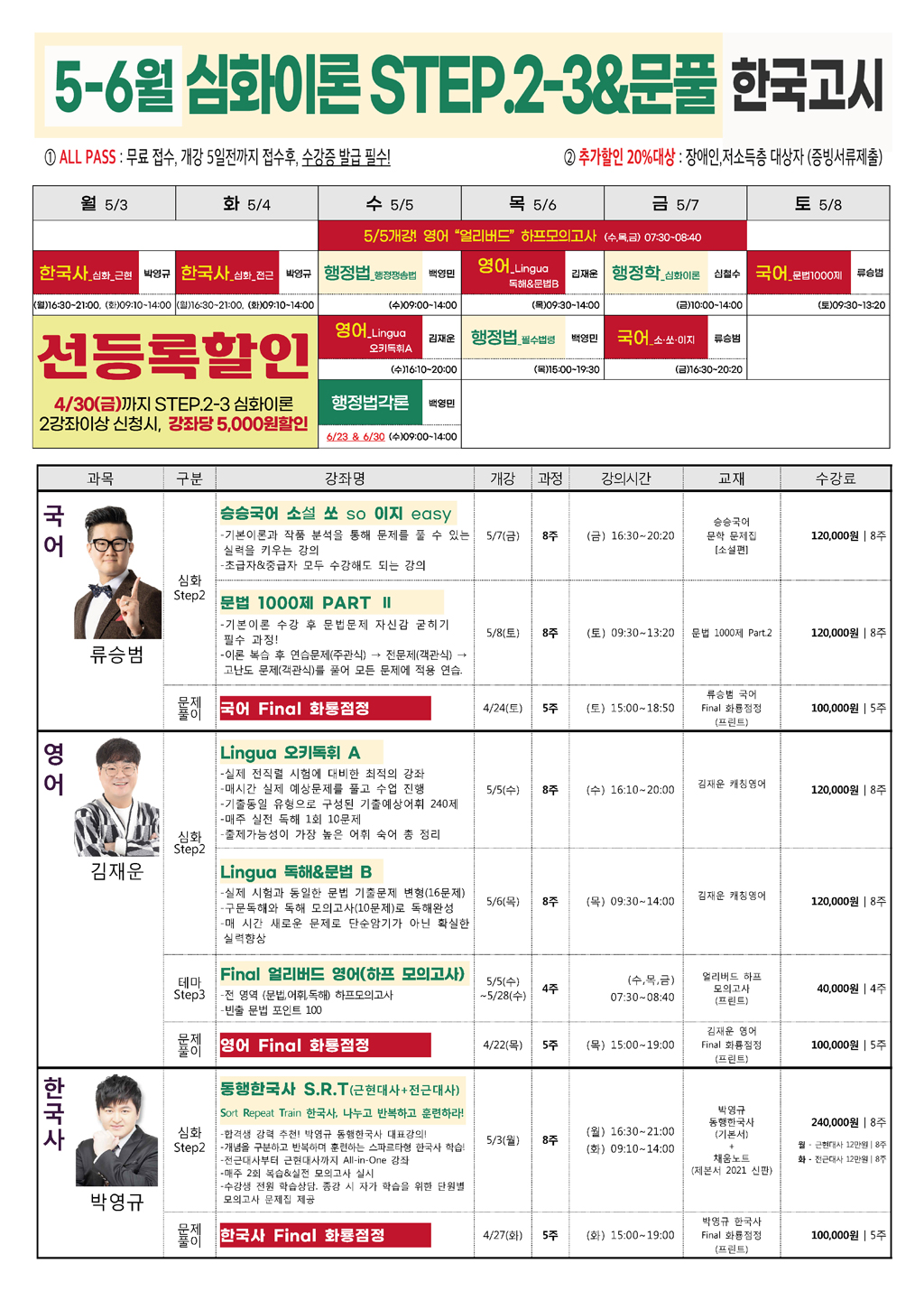 ◇ 22년 AP 등록시, 정독실 2개월 무료(선착순10명)