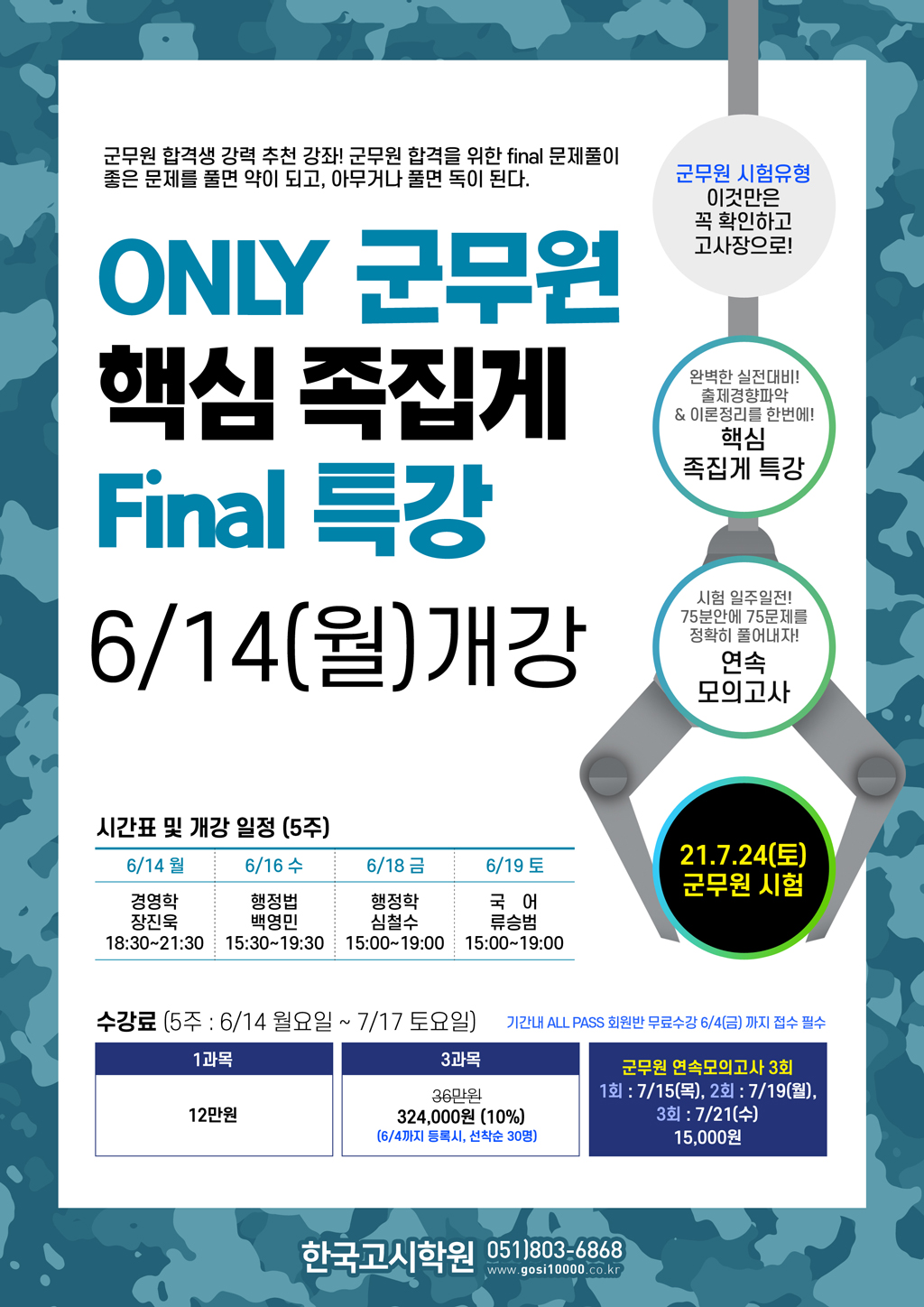 2021.7.24(토)시행! 군무원 시험대비ONLY 군무원 핵심 족집게 Final 특강6월14일 월요일 개강!