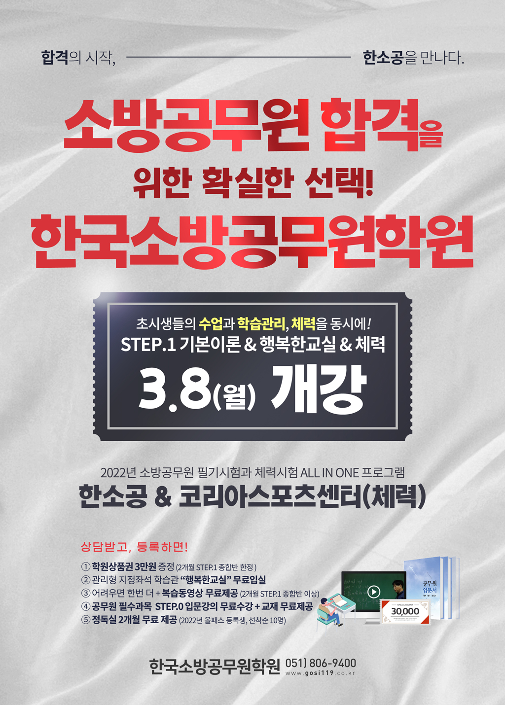 소방공무원 초시생을 위한 특별 EVENT! "상담만 받아도 100% 선물증정!"