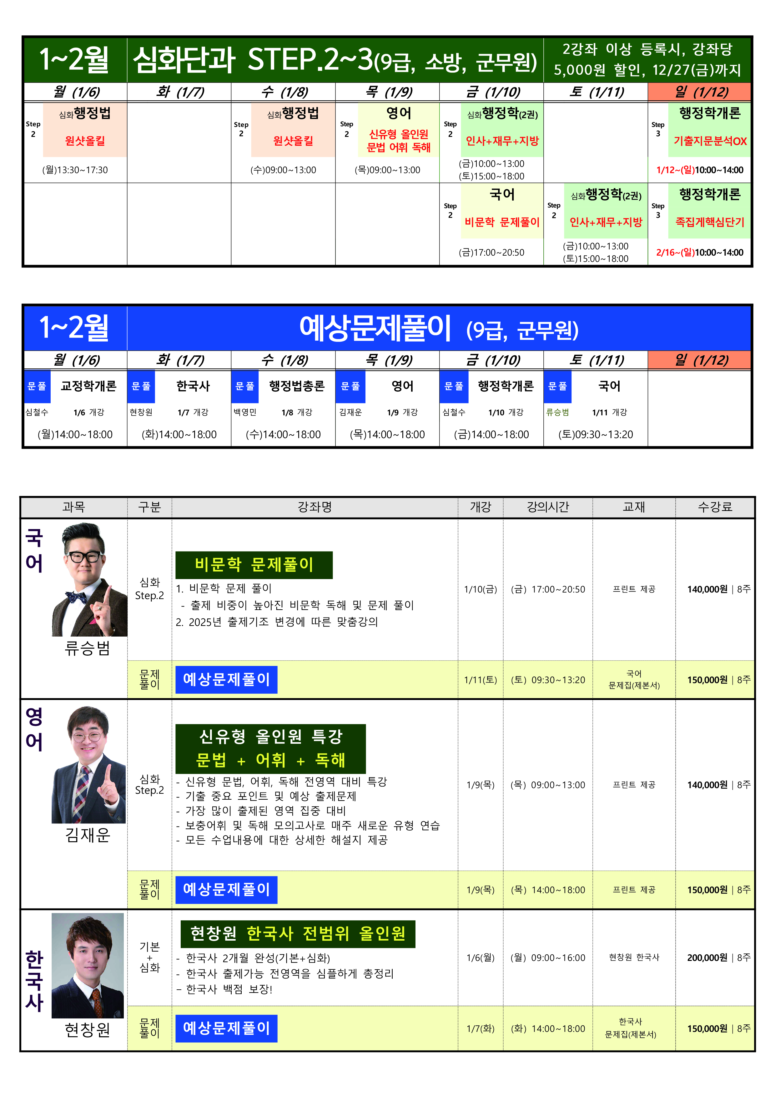 [1-2월] 공무원/군무원 과목별 심화단과
