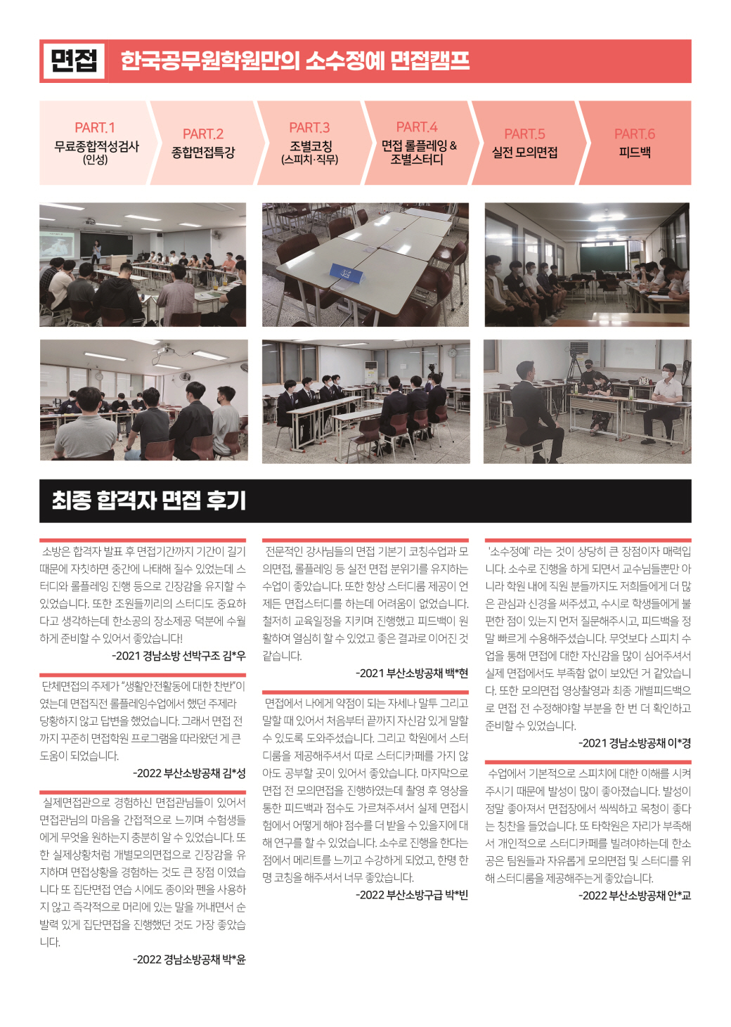관리형 수업 X 복습 프로그램 X 주3회 체력수업 X 소수정예 면접캠프