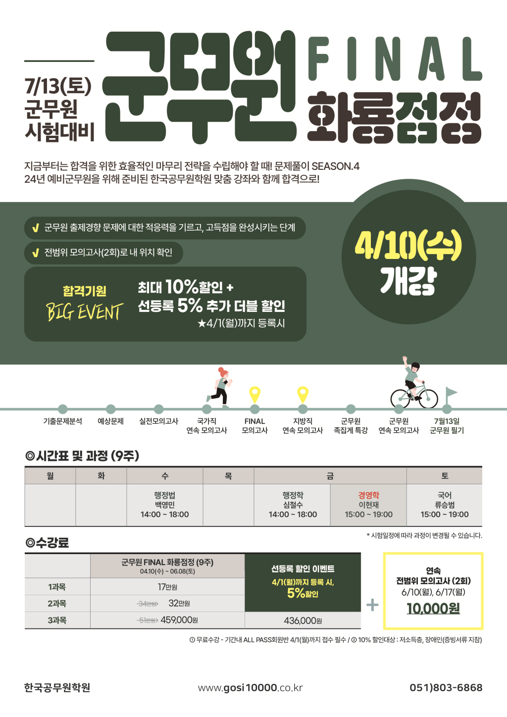 [4월 개강] 군무원 대비 FiNAL 화룡점정 특강 + 연속모의고사