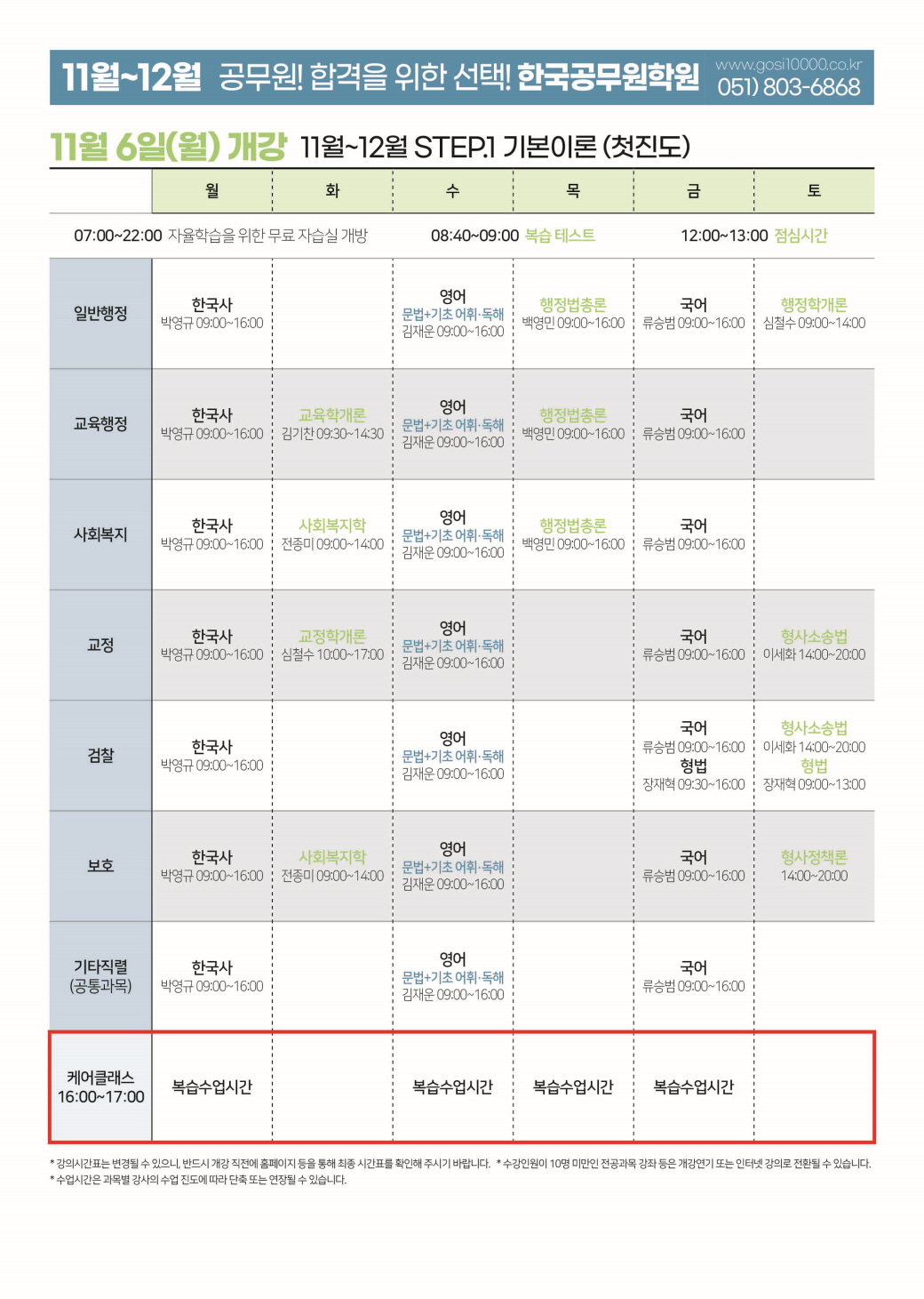 >>11-12월 9급 합격 CARE 클래스 수강신청<<
