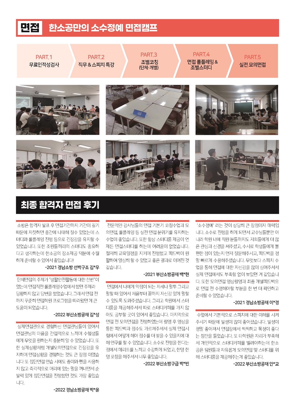 관리형 수업 X 복습 프로그램 X 주3회 체력수업 X 소수정예 면접캠프
