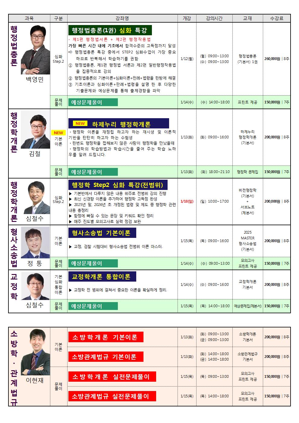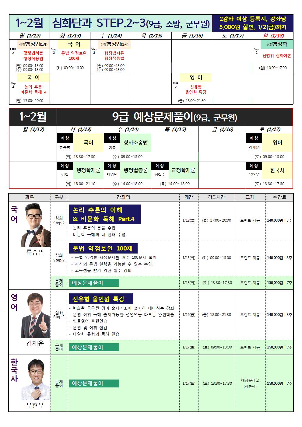 [1-2월] 공무원/소방공무원/군무원 과목별 심화단과