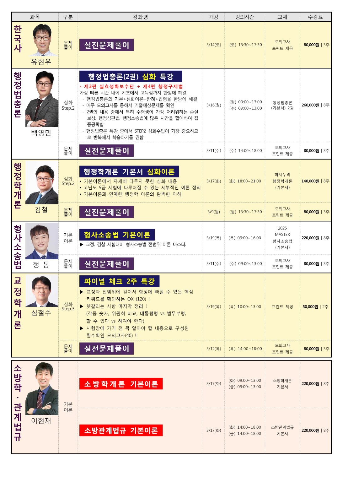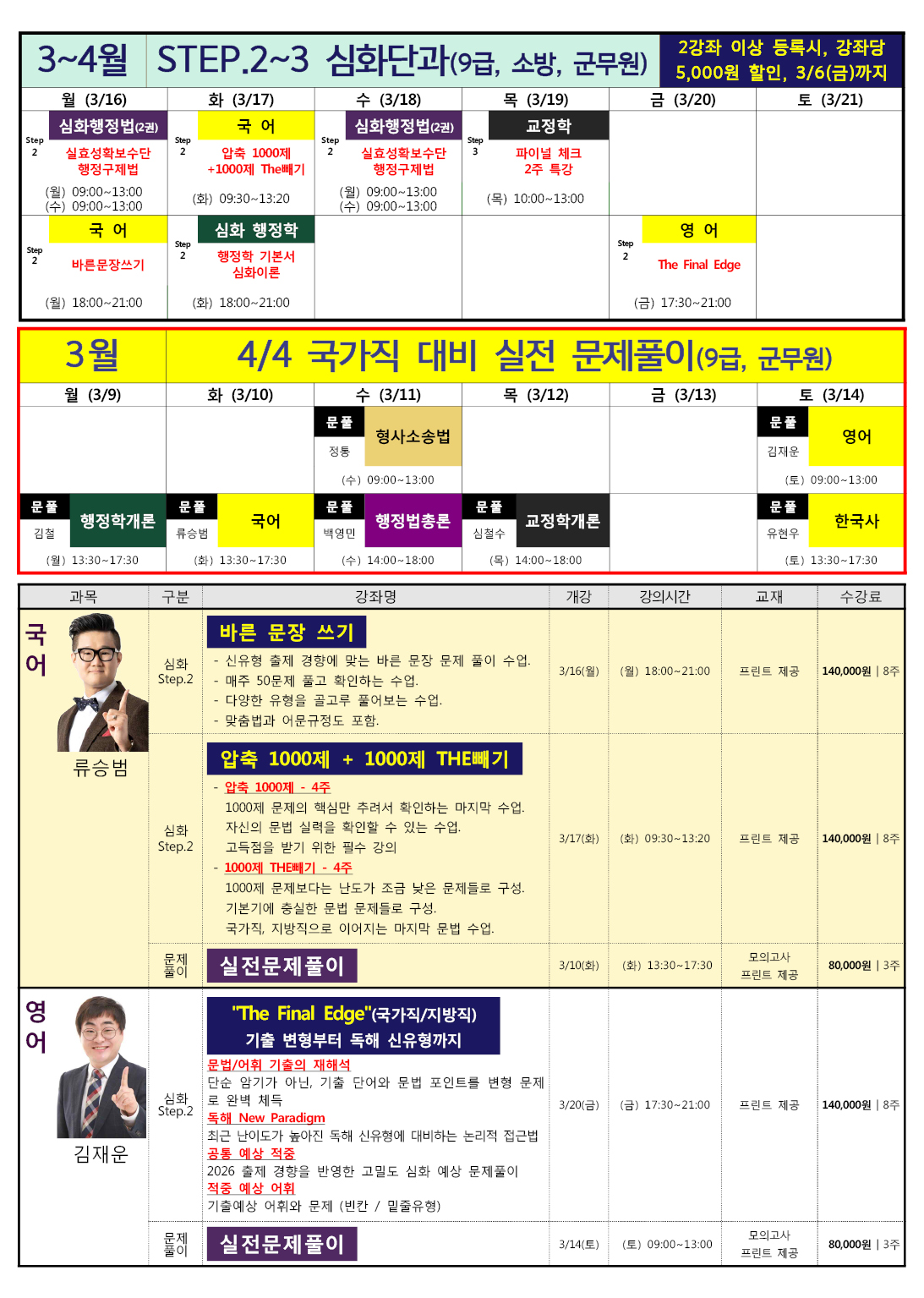 [3-4월] 공무원/소방공무원/군무원 과목별 심화단과