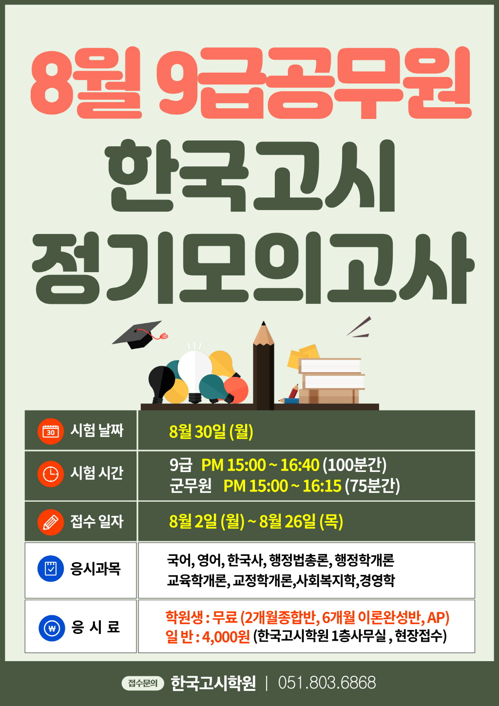 [8월] 한국고시학원 정기 모의고사 시행