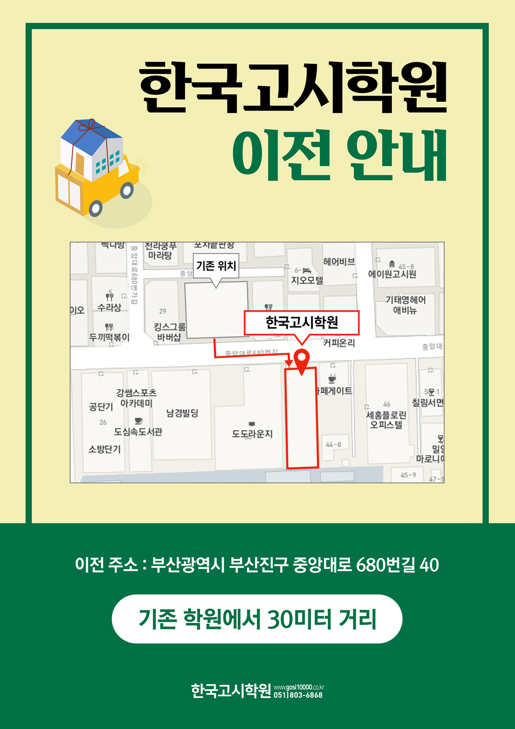 새롭게 이전한 한국고시학원으로 찾아오세요!