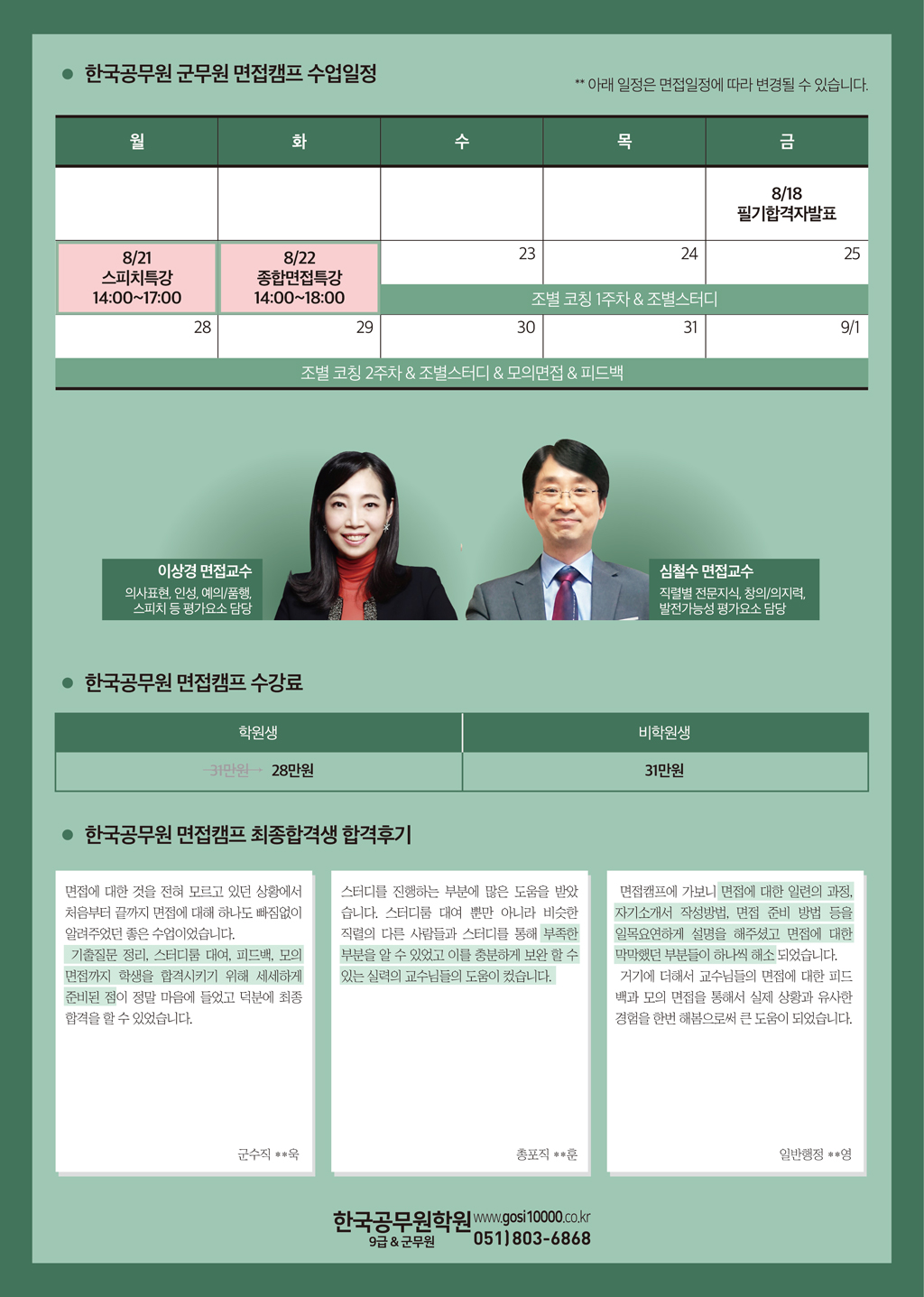 국방부 & 해군 & 공군군무원 면접캠프 신청하러가기>>