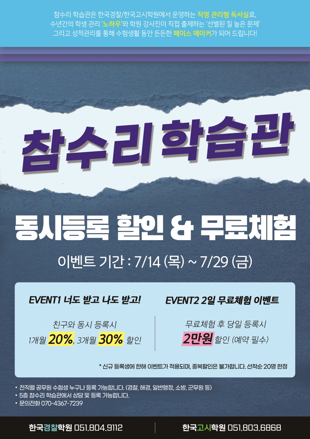 본관 5층 관리형 학습관 참수리! 동시등록 할인& 무료체험 이벤트!