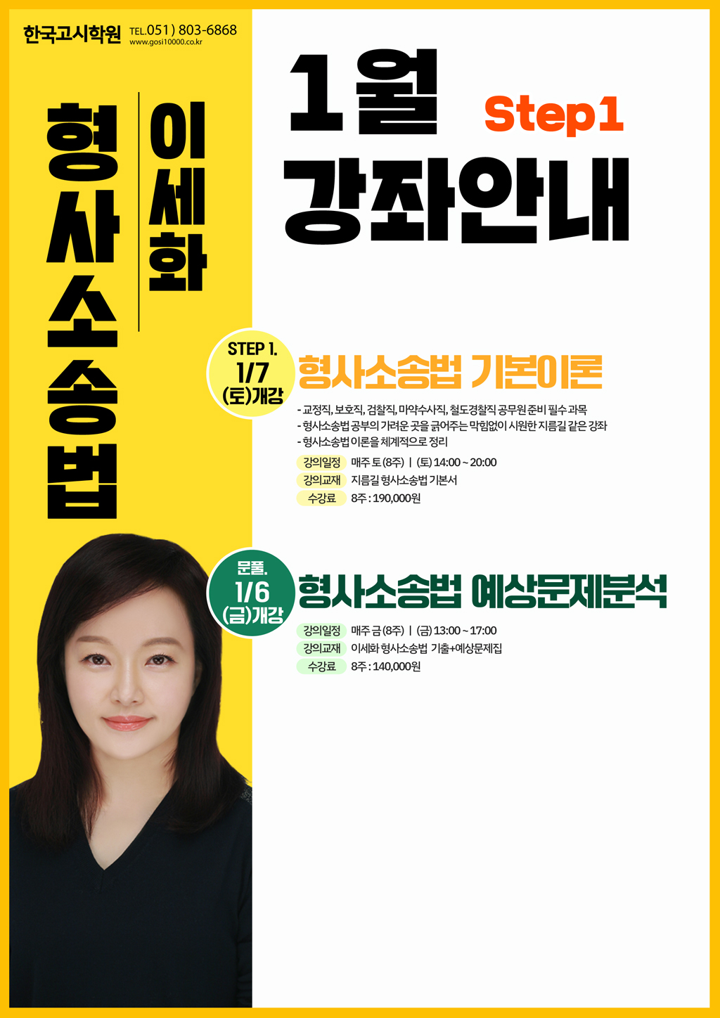 [교정직] 교정직공무원 교정학개론&형사소송법 1/2(월) 개강!