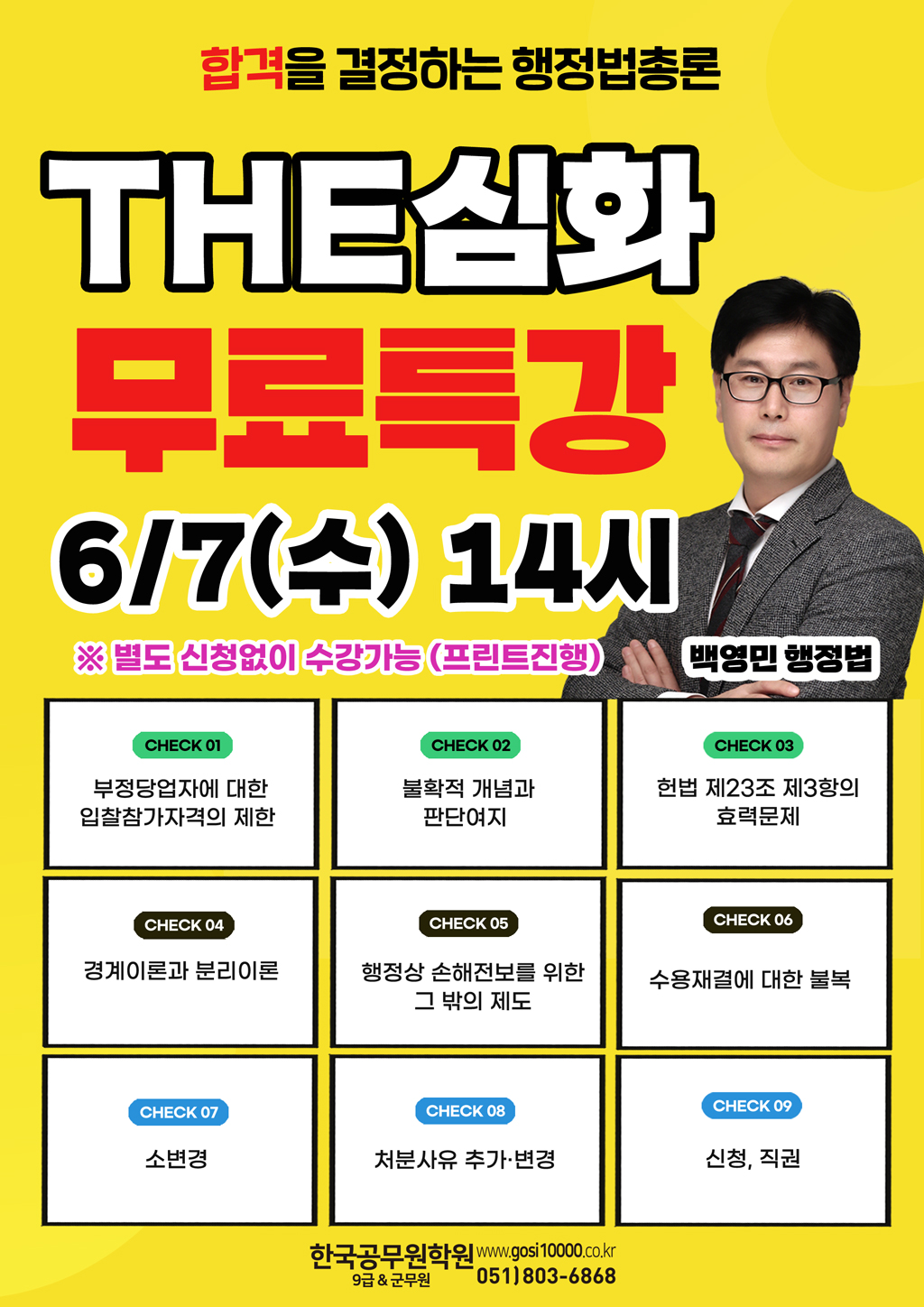 [6월 무료특강] 백영민 행정법 6/8(수) 14시!
