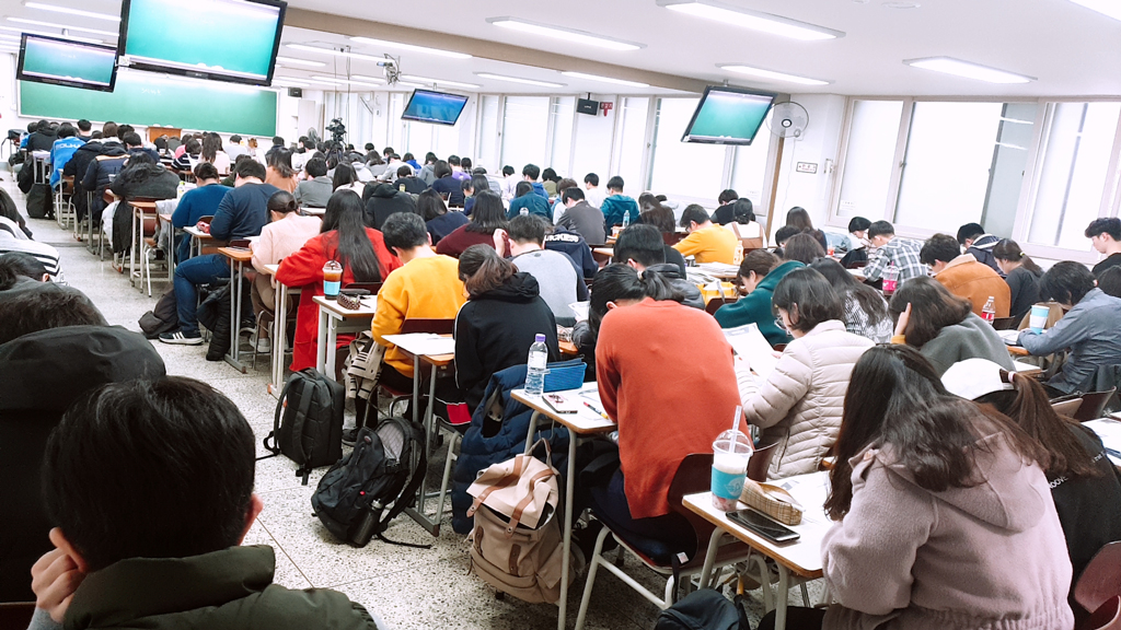 실전처럼 열심히 문제를 풀고 있는 수험생 여러분!