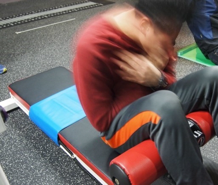 소방공무원 체력시험 윗몸일으키기를 측정합니다.