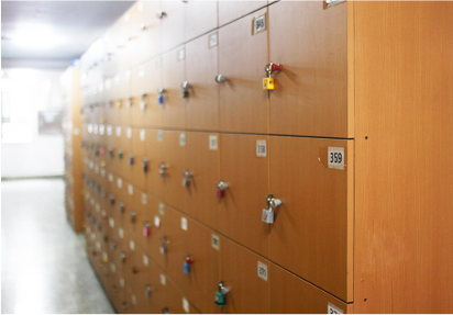 600여개의 사물함이 각 층에 있으며, 수험서 및 개인용품을