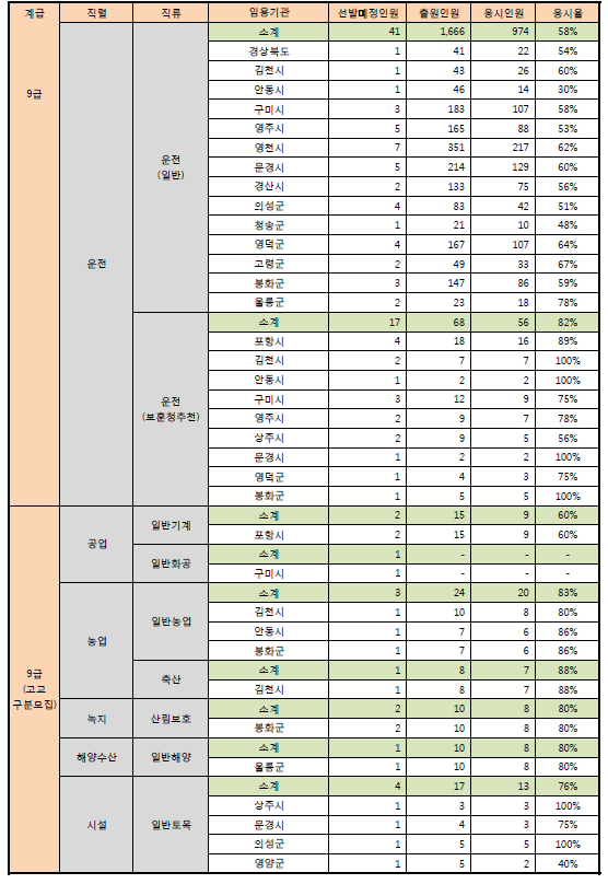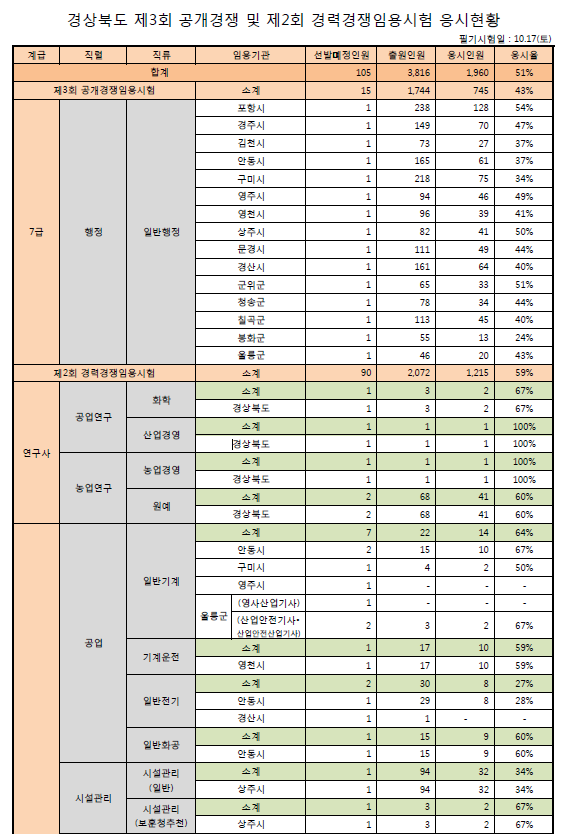 경상북도 제3회 공개경쟁 및 제2회 경력경쟁임용시험 응시현황