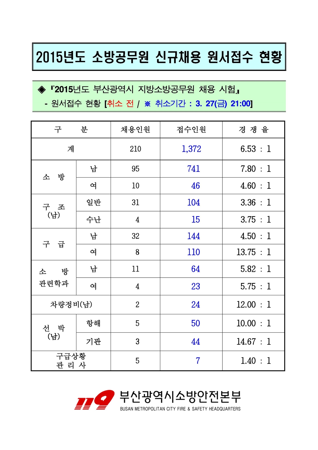 2015 부산시 소방공무원 신규채용 경쟁률