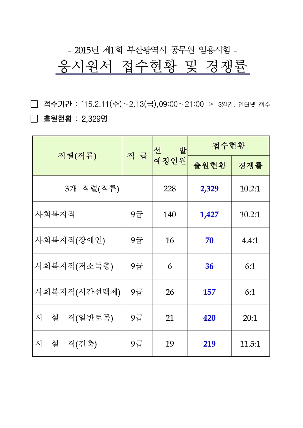 2015 제1회 부산시 공무원 임용시험 경쟁률