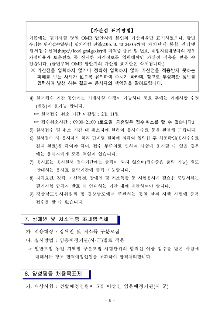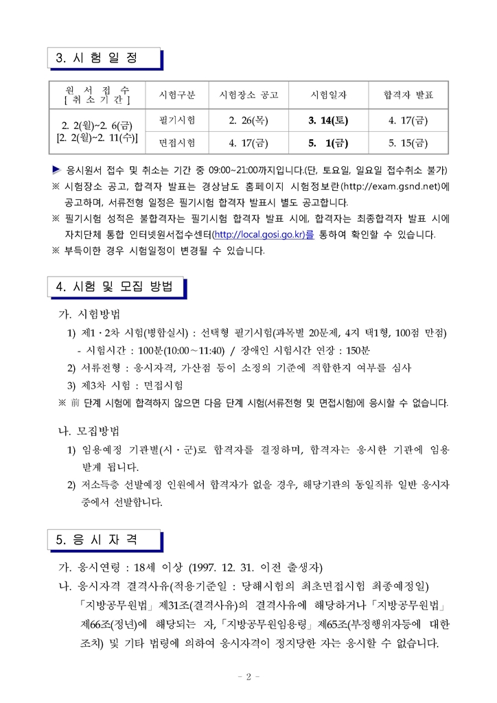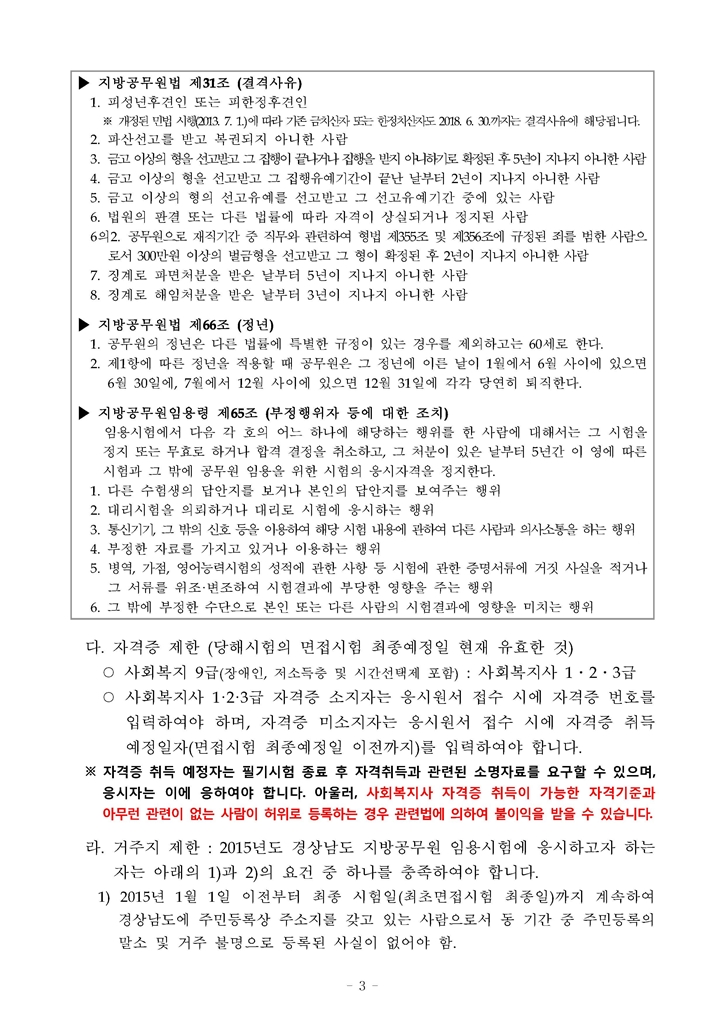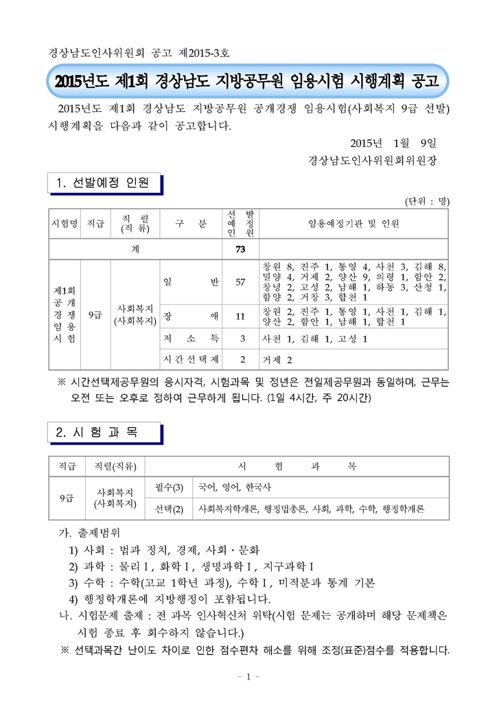 2015 제1회 경남 지방공무원(사회복지직) 임용시험 공고(~2.6)