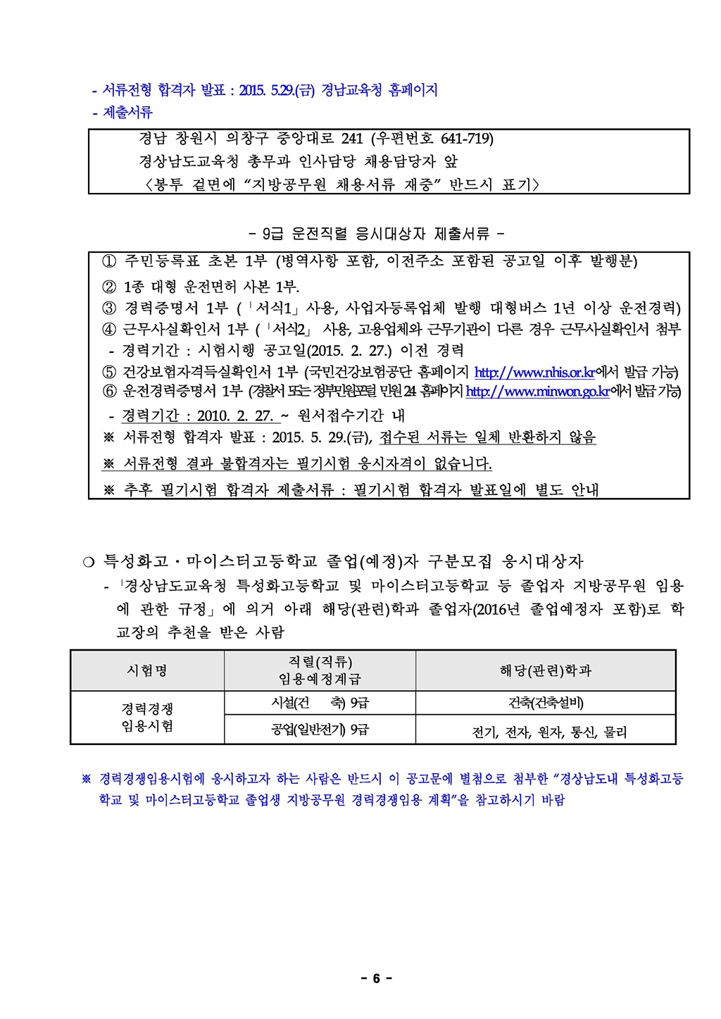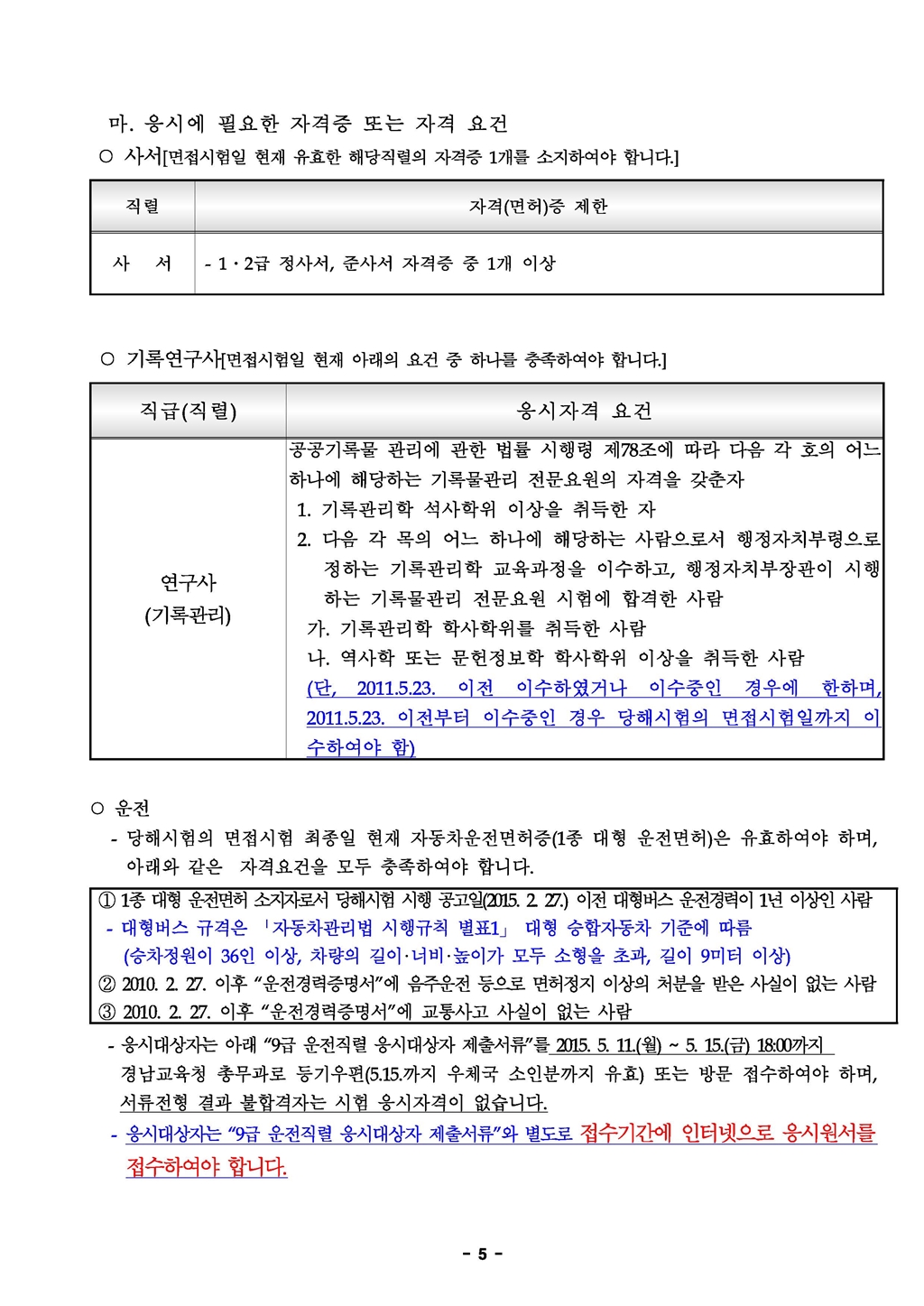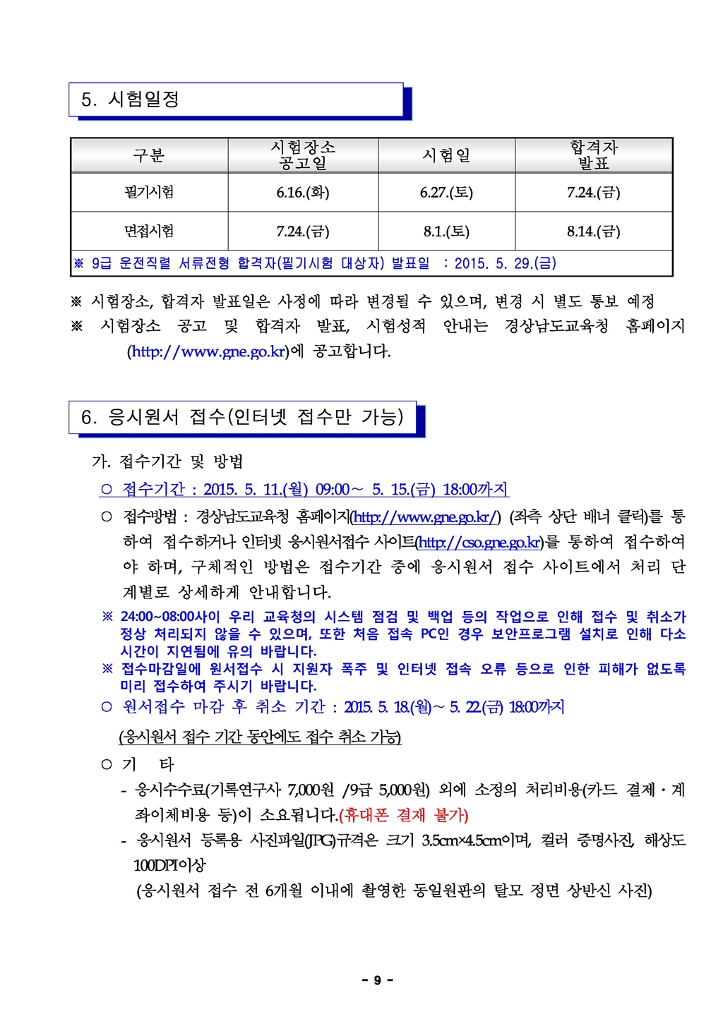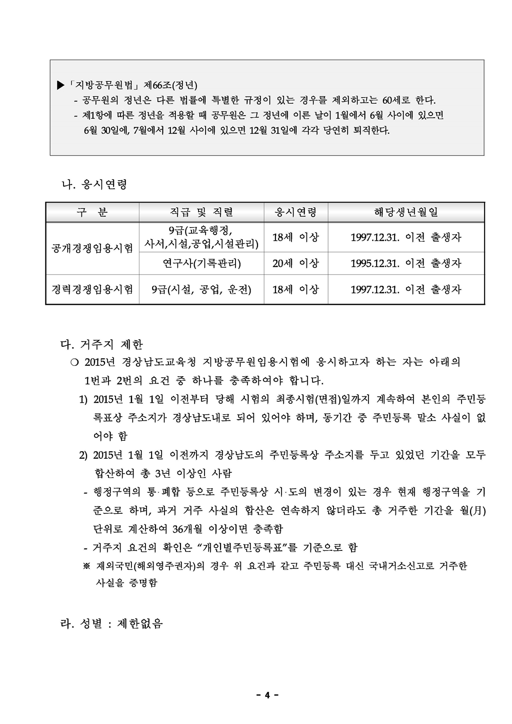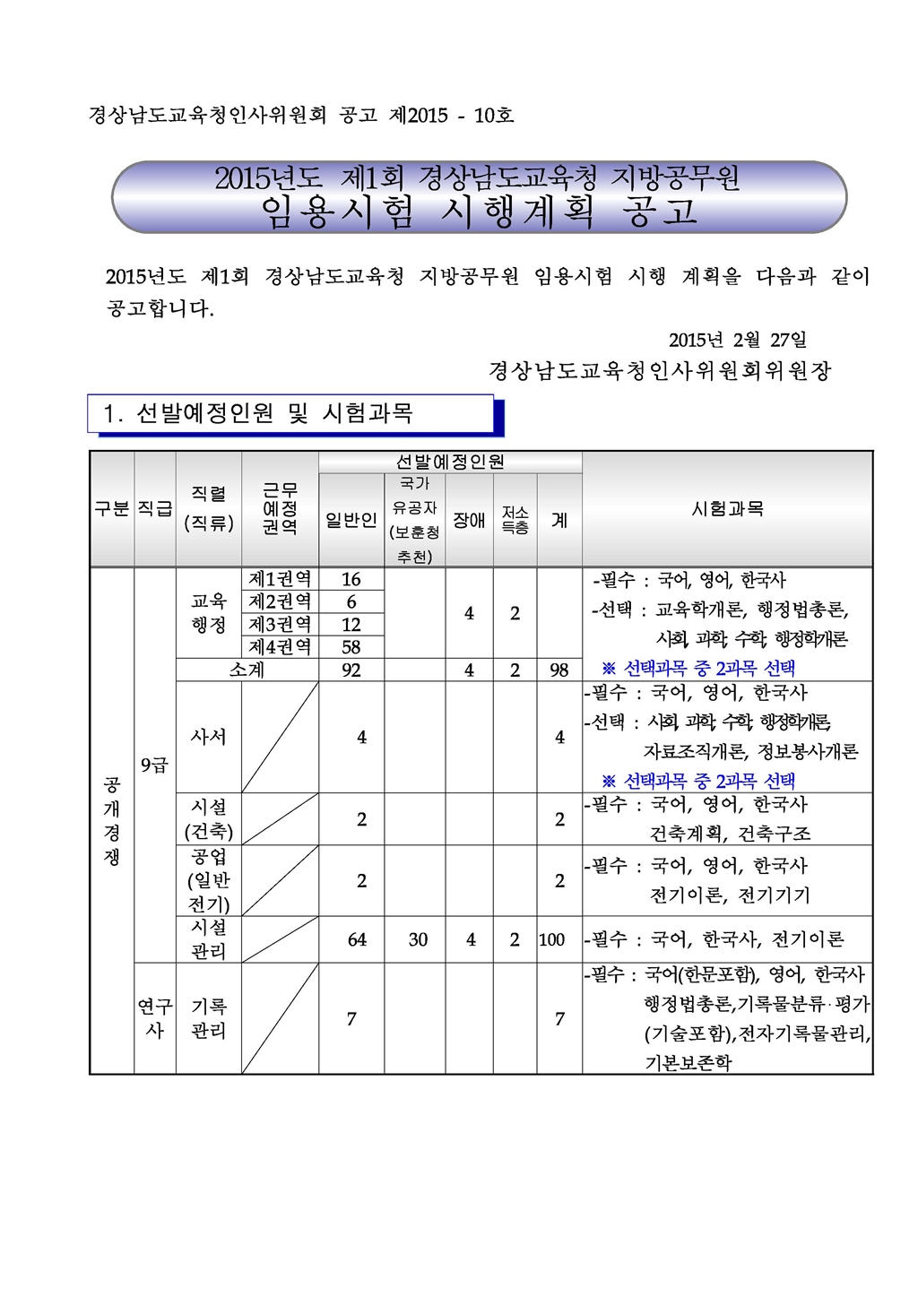 2015 경남교육청 지방공무원 임용시험 시행계획 공고(~5.15)