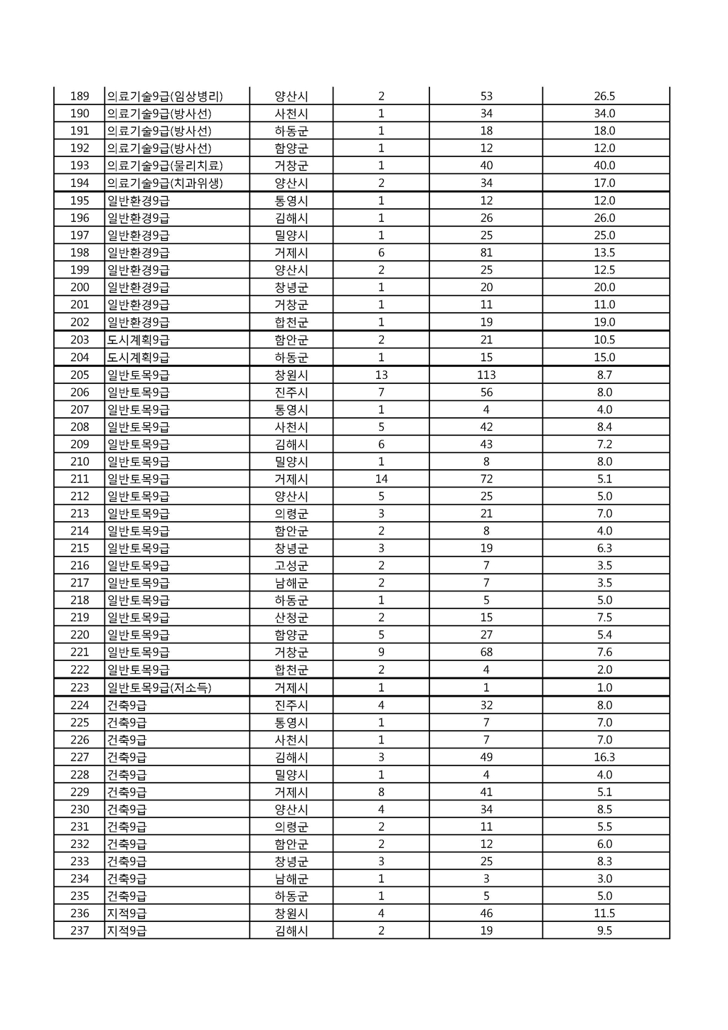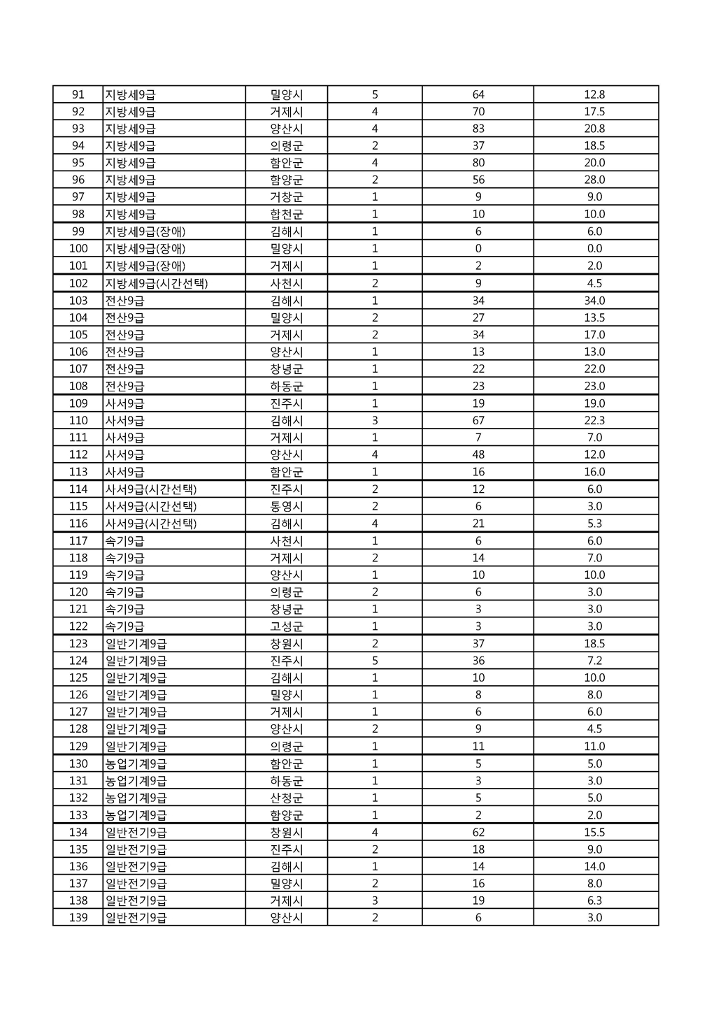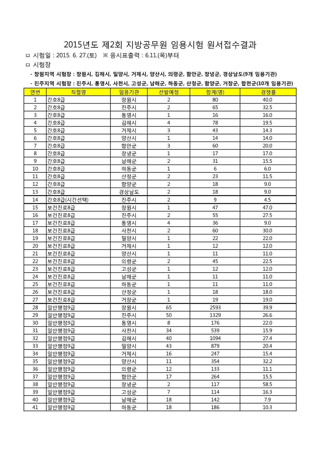 2015 제2회 경남 지방공무원 임용시험 경쟁률