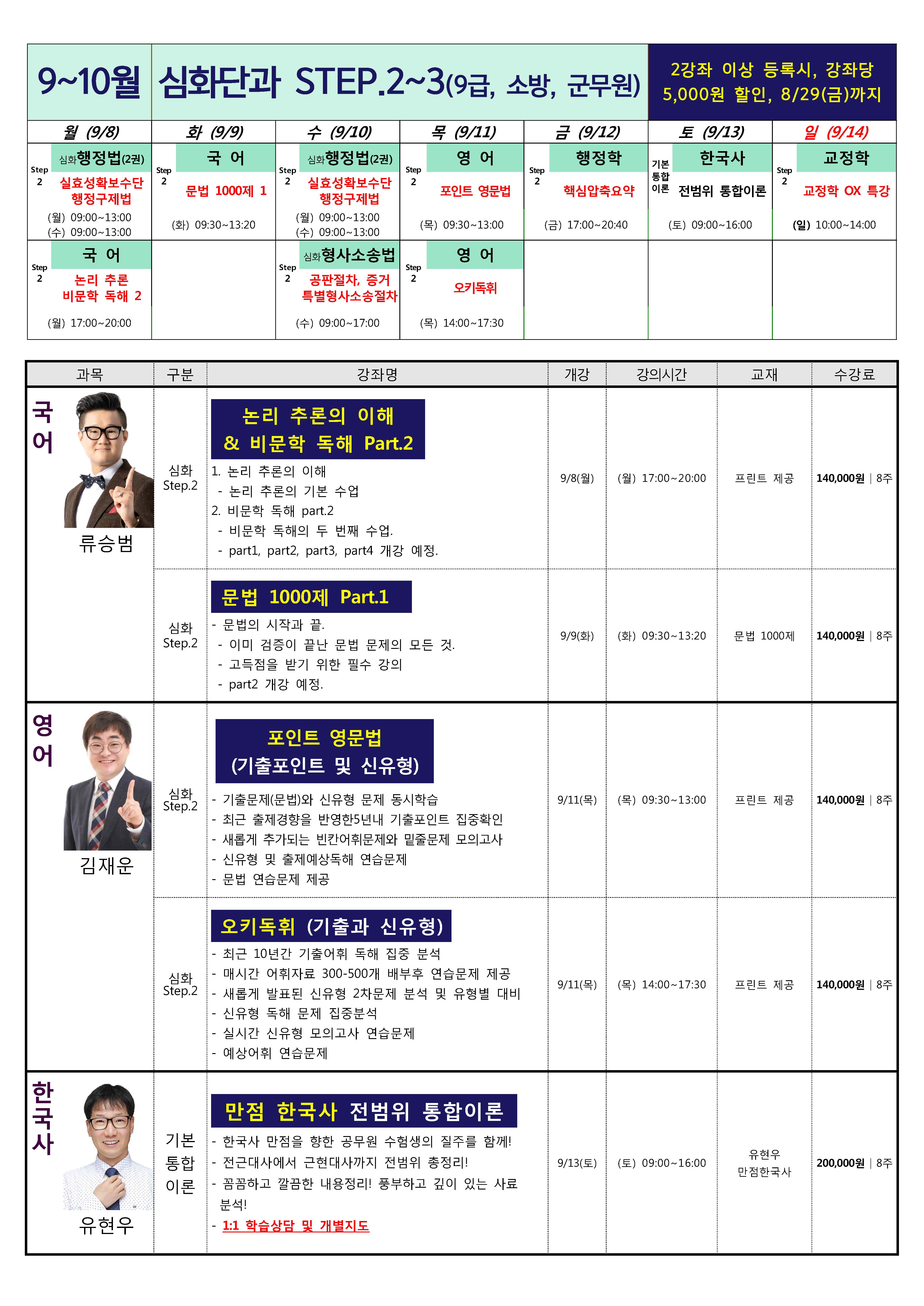 [9-10월] 공무원/소방공무원/군무원 과목별 심화단과