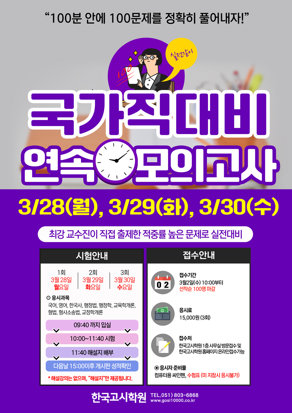 100문제를 100분안에 정확히 풀어내고, 실전감각을 익히자!