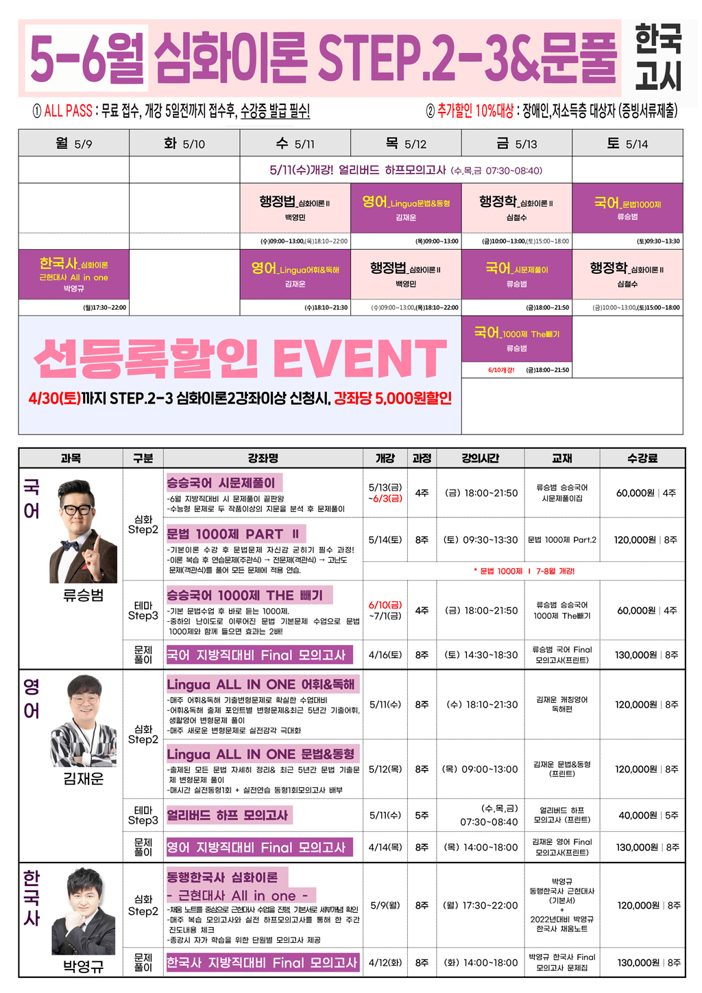 선등록 EVENT! 4/30(토)까지 STEP.2-3 2강좌이상 등록시 강좌별 5000원할인!
