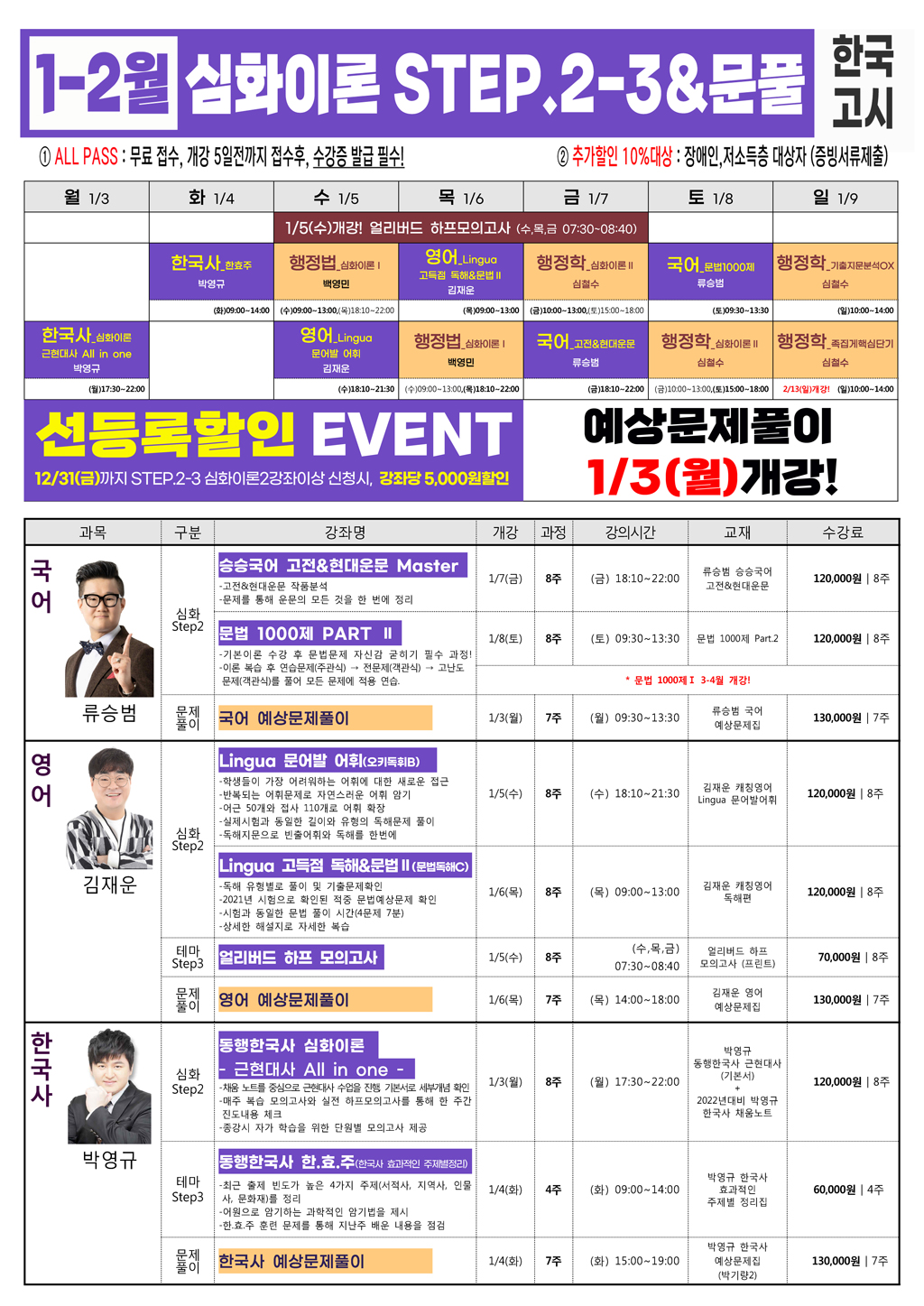 STEP.1 기본이론 수강 후, 필수 과정! 고득점을 준비하라!STEP.2-3 심화이론 1월3일 월요일 개강!선등록 EVENT! 12/31(금)까지 STEP.2-3 2강좌이상 등록시 강좌별 5000원할인!