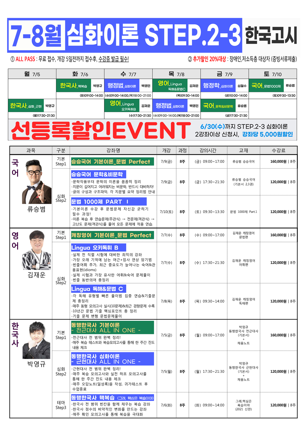 선등록 EVENT! 6/30(수)까지 2강좌이상 등록시 강좌별 5000원할인!