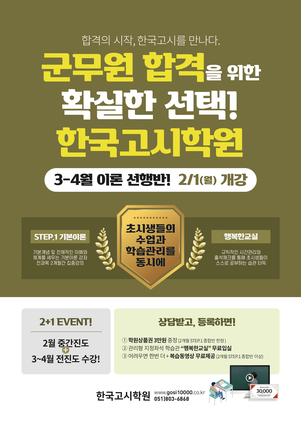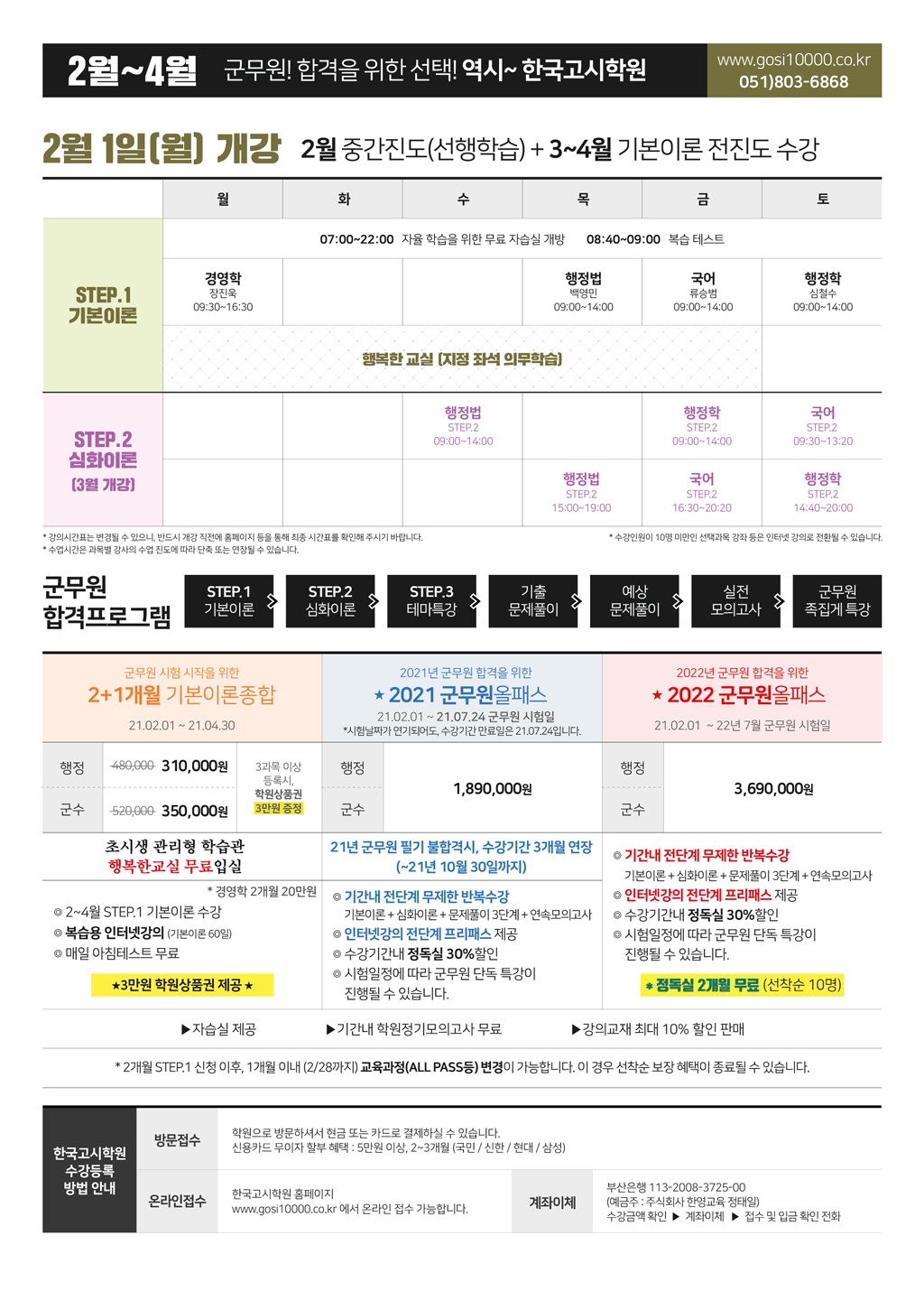 ▶[2월시작] 합격하라! 군무원 3-4월 선행반 행복한교실 2/1(월) 개강!◀