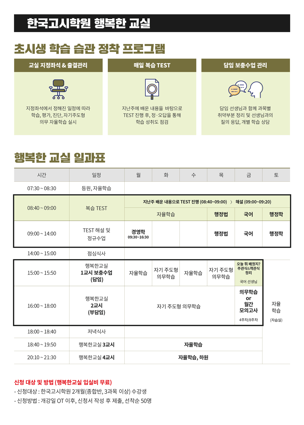 ◇ 관리형 지정좌석 학습관 "행복한교실" 무료입실