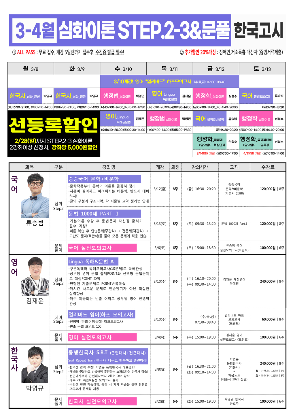 STEP.2-3 심화이론 3월 8일 월요일 개강!선등록 EVENT! 2/28(일)까지 2강좌이상 등록시 강좌별 5000원할인!