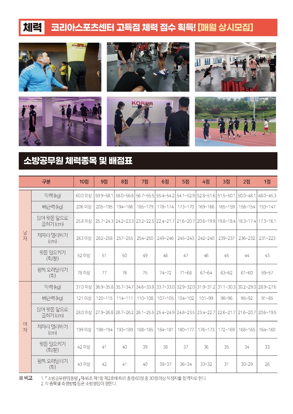 ▷ 체력시험 비중UP! 주3회 체력수업진행