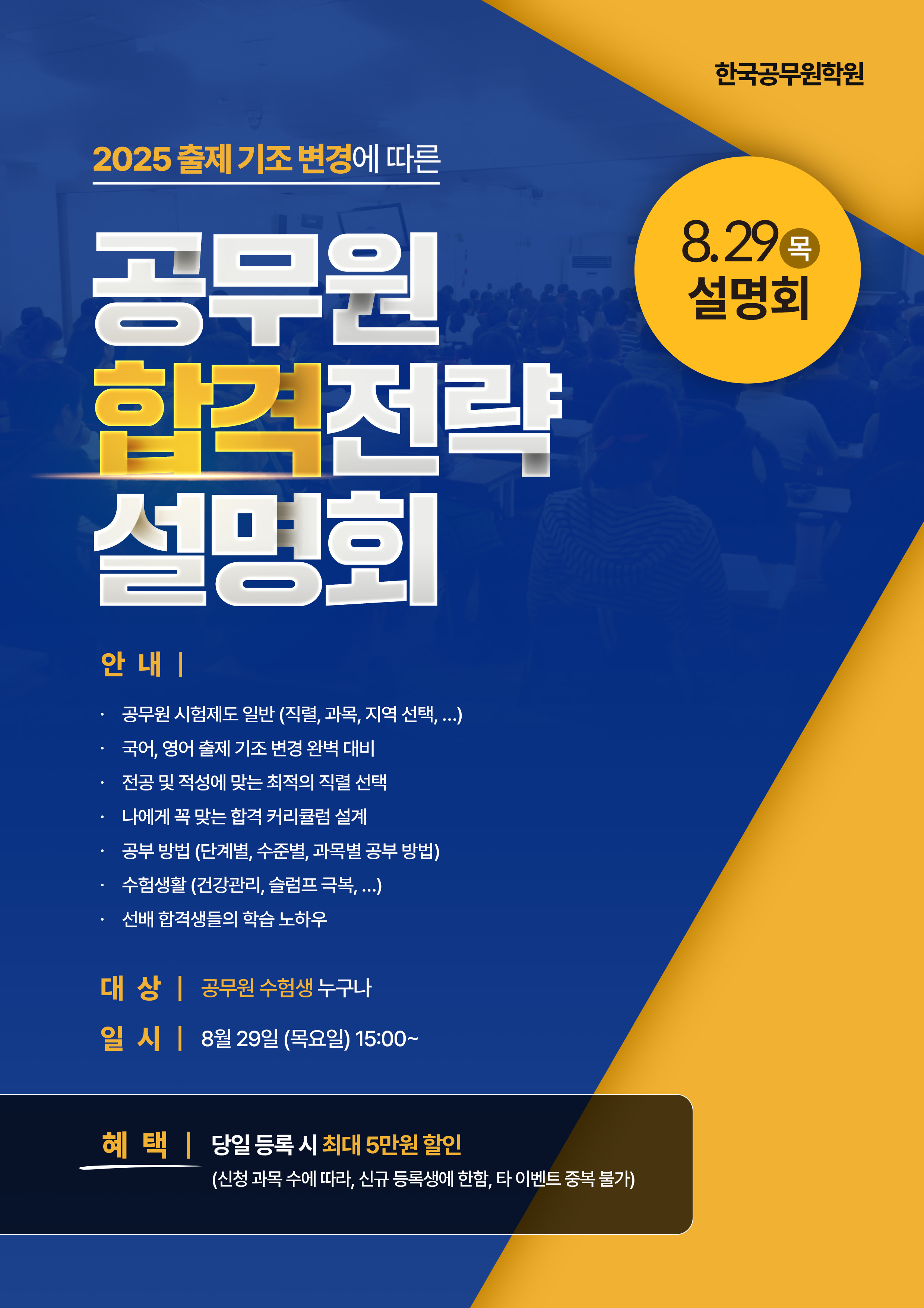8/29(목) 9급 공무원 무료합격설명회 15:00~