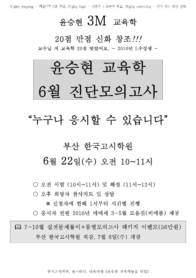[임용_교육학_모의고사] 윤승현 교육학논술 6/22(수) 진단모의고사<응시,해설,첨삭=무료>