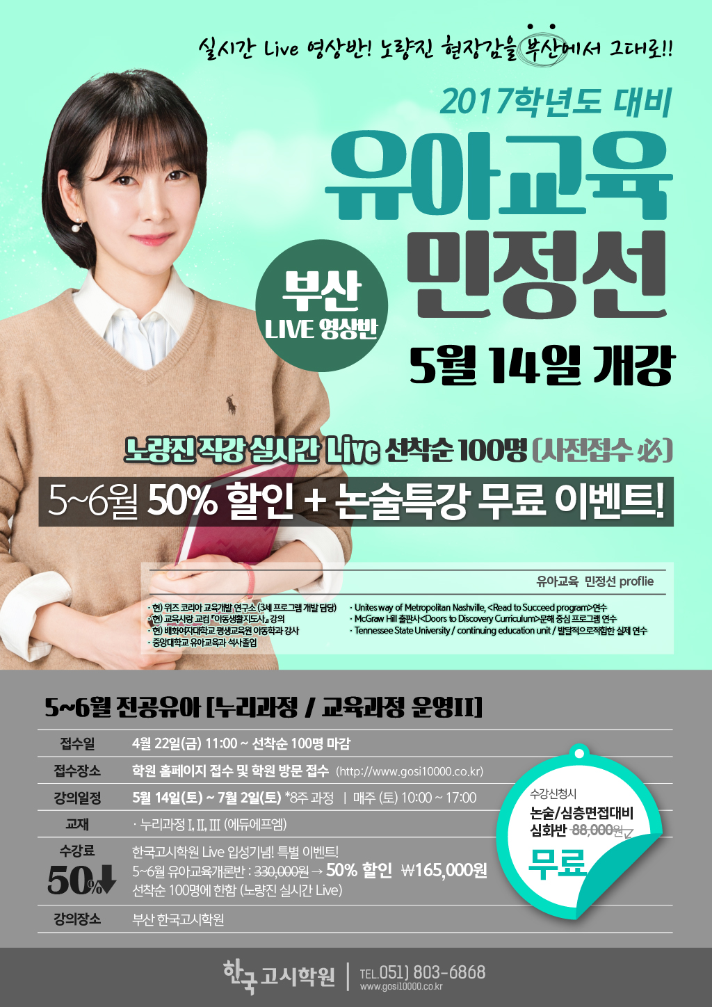 [유아교육] 민정선 유아교육 부산 Live영상반 5/14(토) 개강! 수강료 50%할인 이벤트!