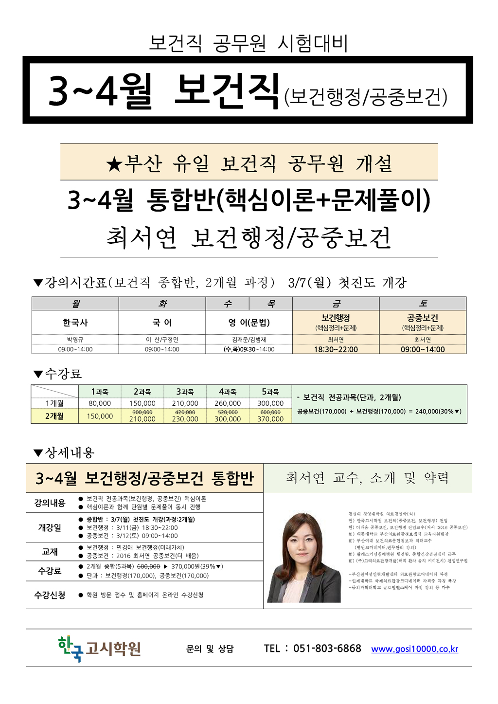 [3~4월 보건직] 3~4월 보건직 공무원 종합반 개강!! * 수강료 할인 이벤트(최대 39%)
