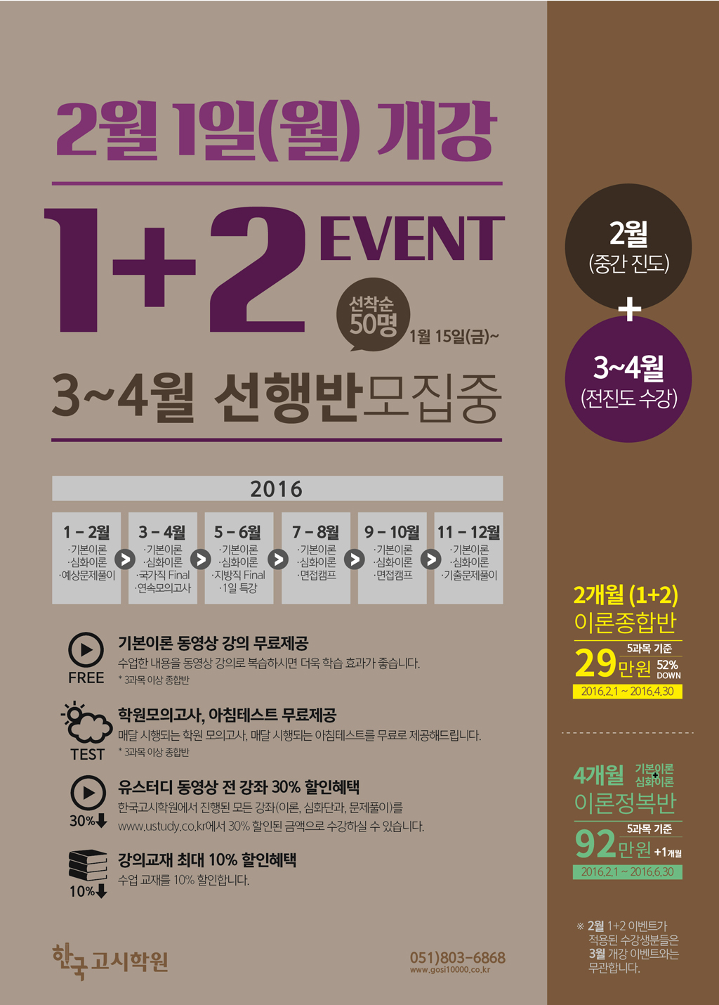 [2月 개강] 3~4월 종합이론 선행반 모집 [1+2 이벤트 2/1~4/30]