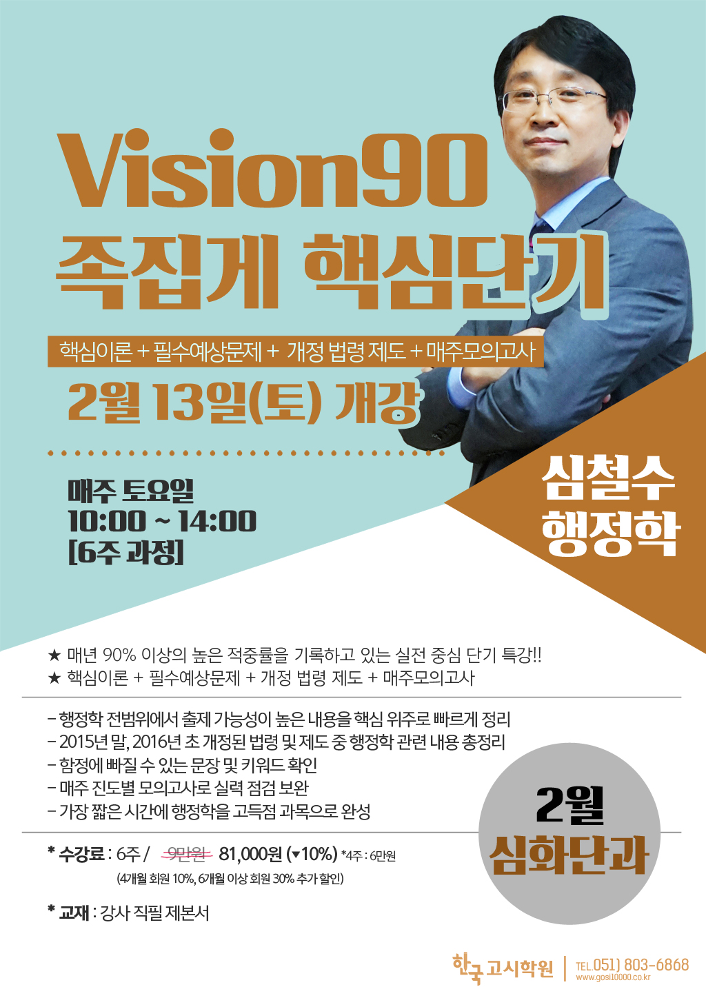 [2월 개강] 심철수 행정학 Vision90 족집게 특강 * 2월13일(토) 개강 !!